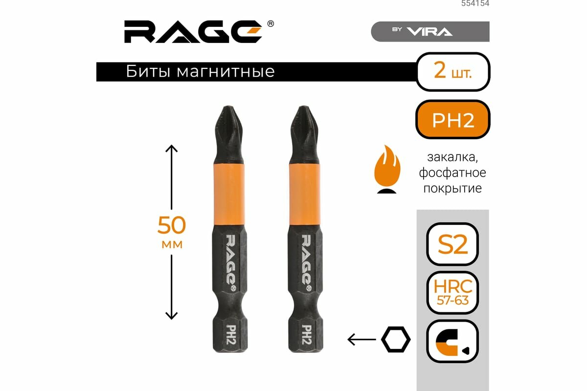 Биты магнитные PH2, 50 мм, 2 шт, S2 rage by VIRA 554154 интересное: