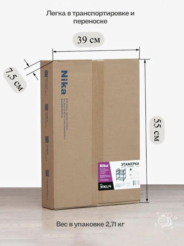 Этажерка NIKA "Комфорт-1" разборная, 44х33х50см, узкая 3-х ярусная ЭТК1/Ч