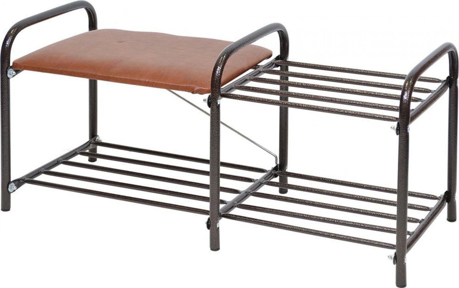 Этажерка для обуви Люкс 2-х ярусная с сиденьем из винилискожи коричневый/медный антик