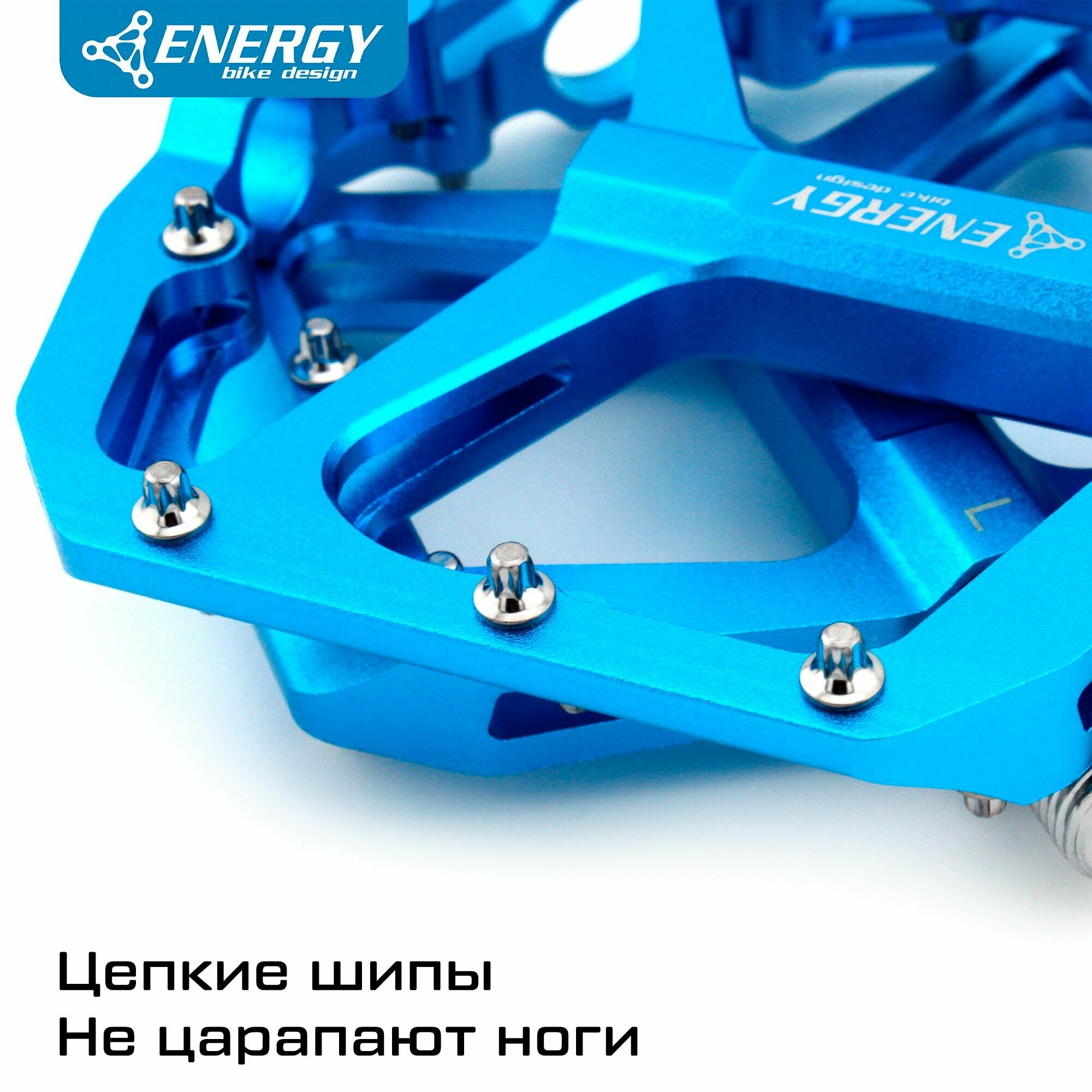 Педали для велосипеда Energy AM1, 14 шипов, алюминиевые, голубые интересное: