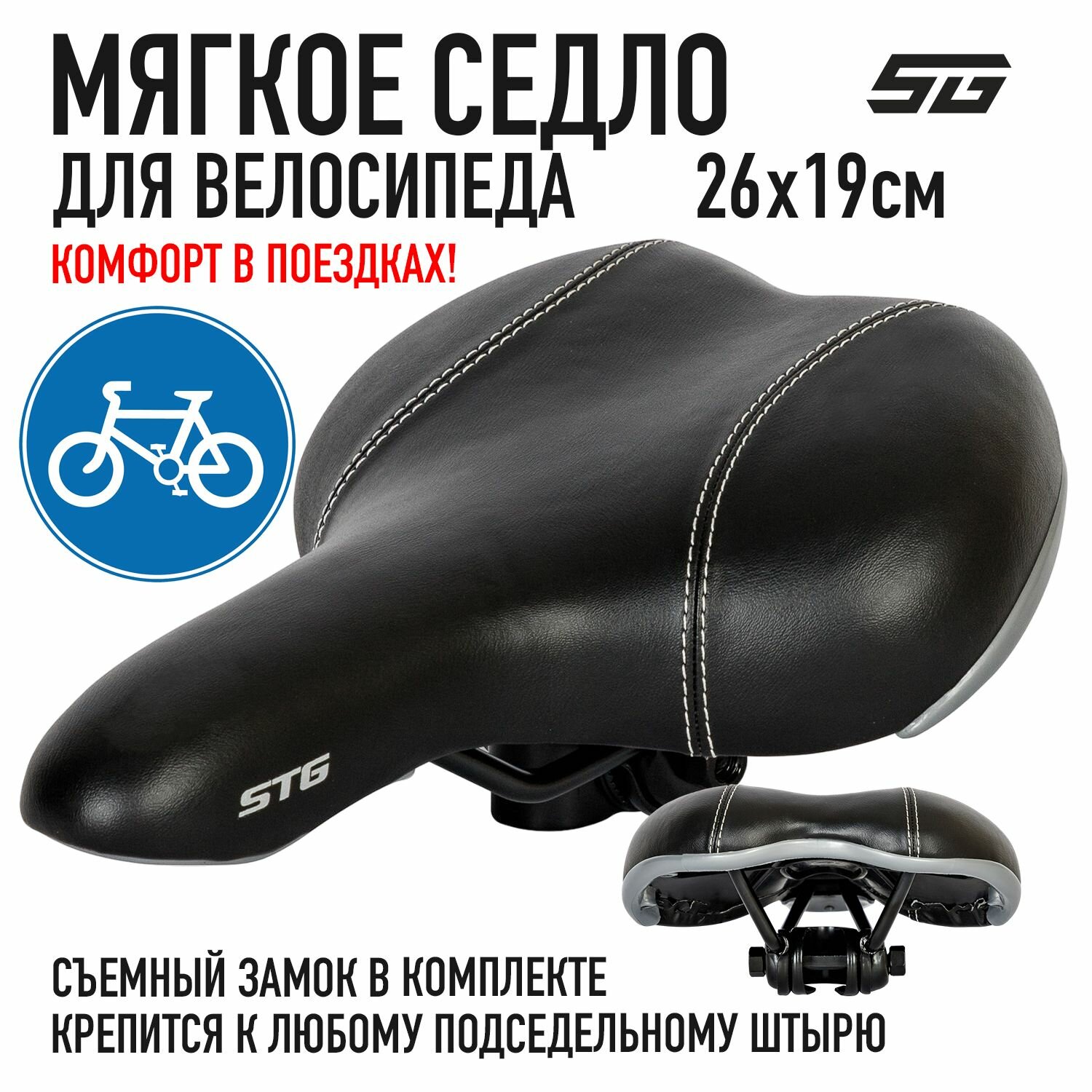 Седло велосипедное комфортное STG VD720-003 MTB, черное интересное: