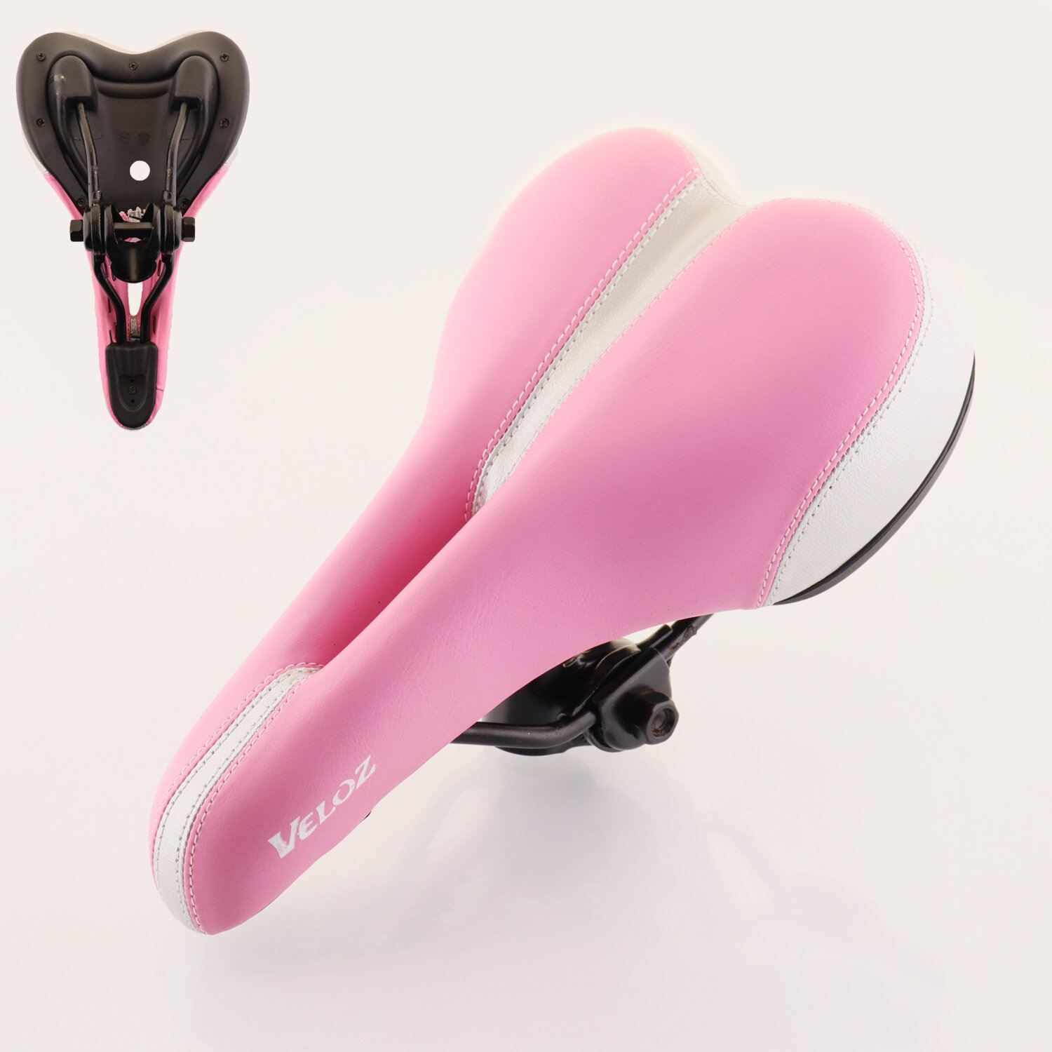 Седло велосипедное (mod:3) (150x260mm, спортивное, розовое, под кожу) "VELOZ" интересное: