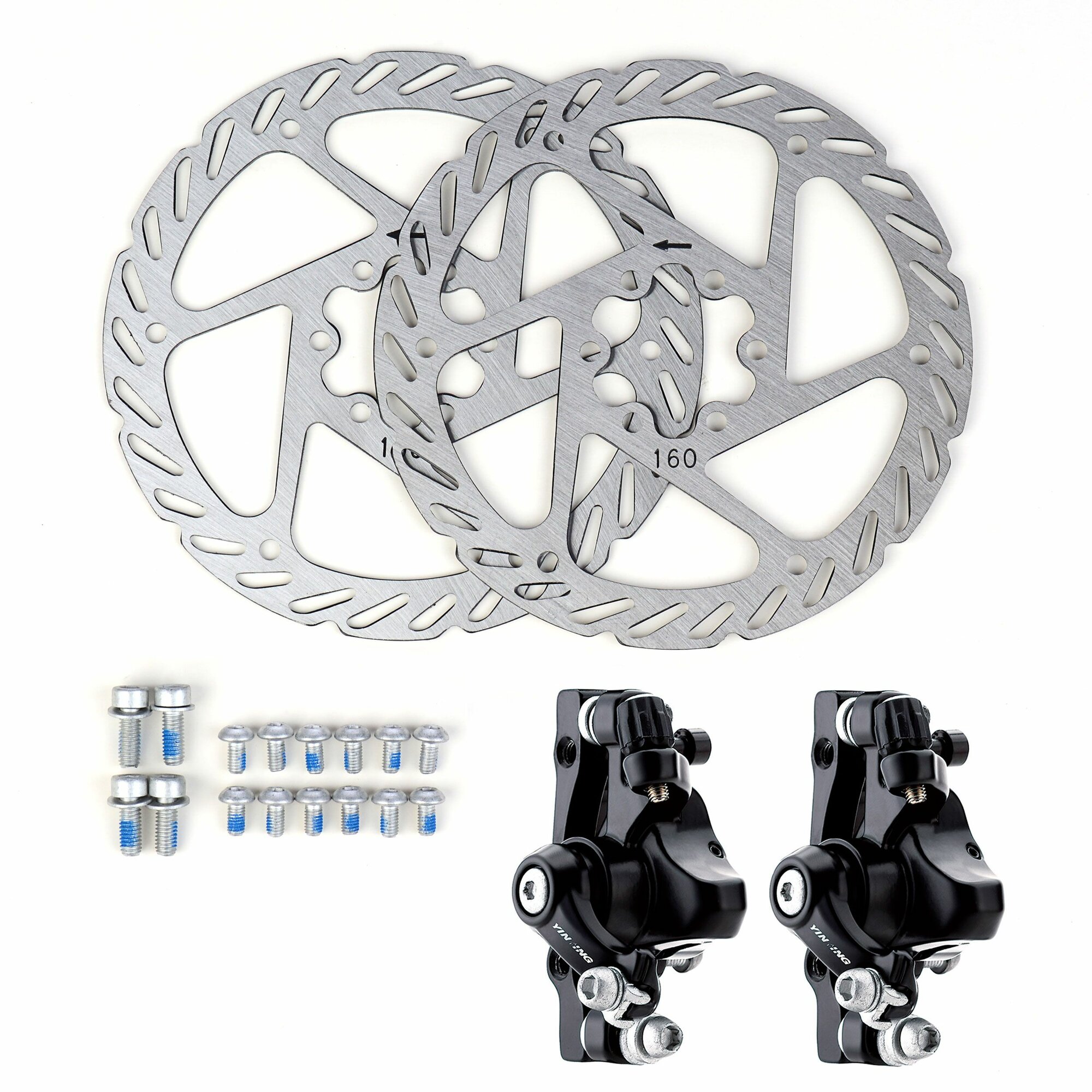 Купить Тормозной набор дисковый механический передний задний COMIRON YX-DB08, ротор YRT-05-A, 160мм, чёрный, цельнолитой, круглые колодки (P01) /уп 25/