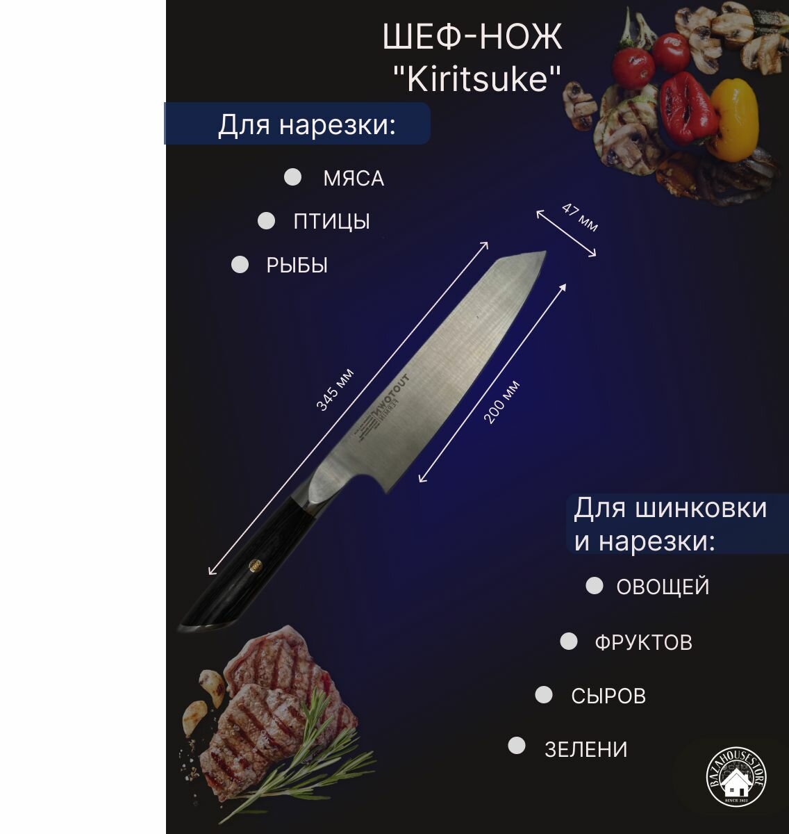 Кухонный нож Kiritsuke серии Earl, TUOTOWN
