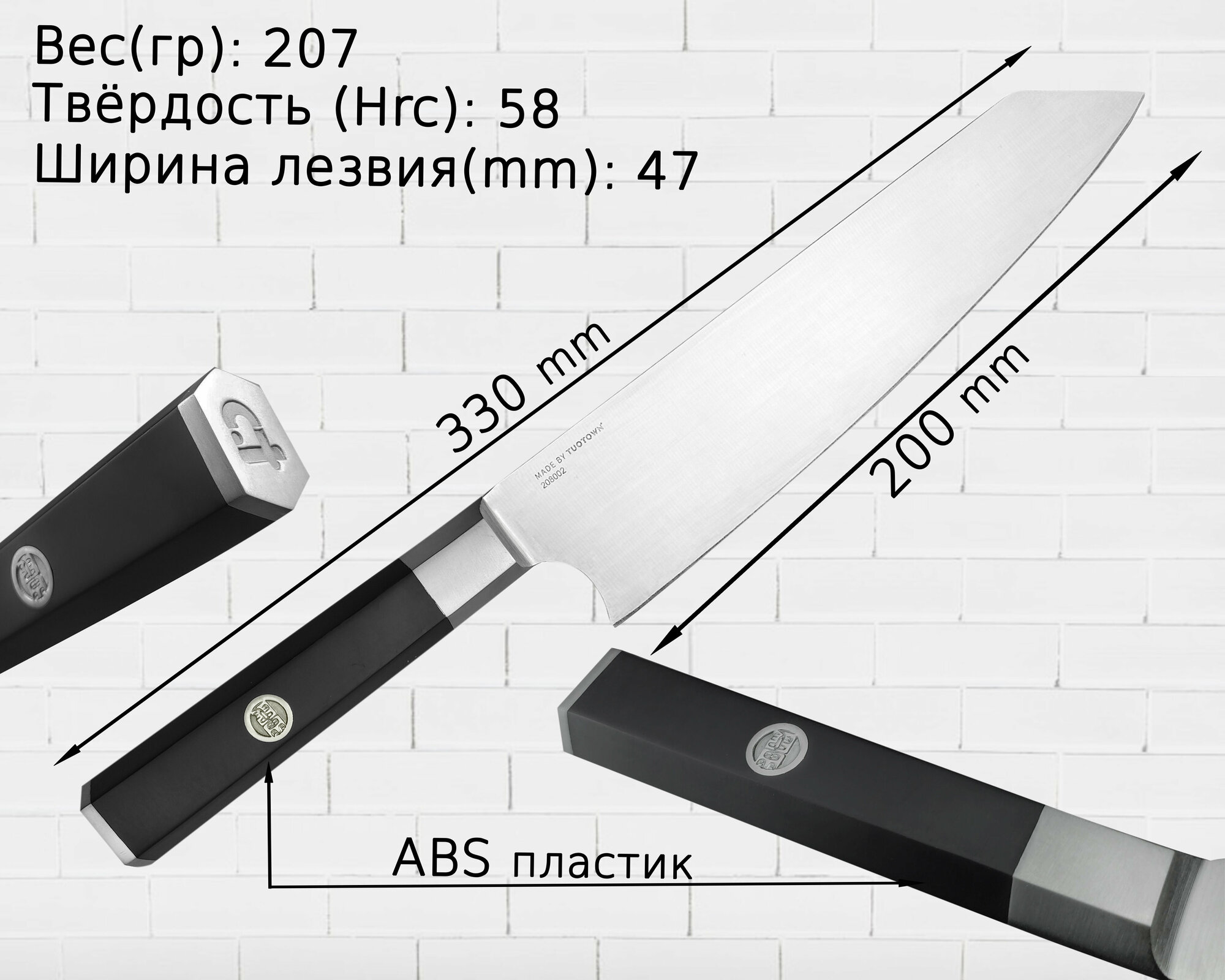 Кухонный нож Кирицуке серии Fermin-W, из нержавеющей стали (рукоять ABS-пластик) Tuotown 178002, 20 см