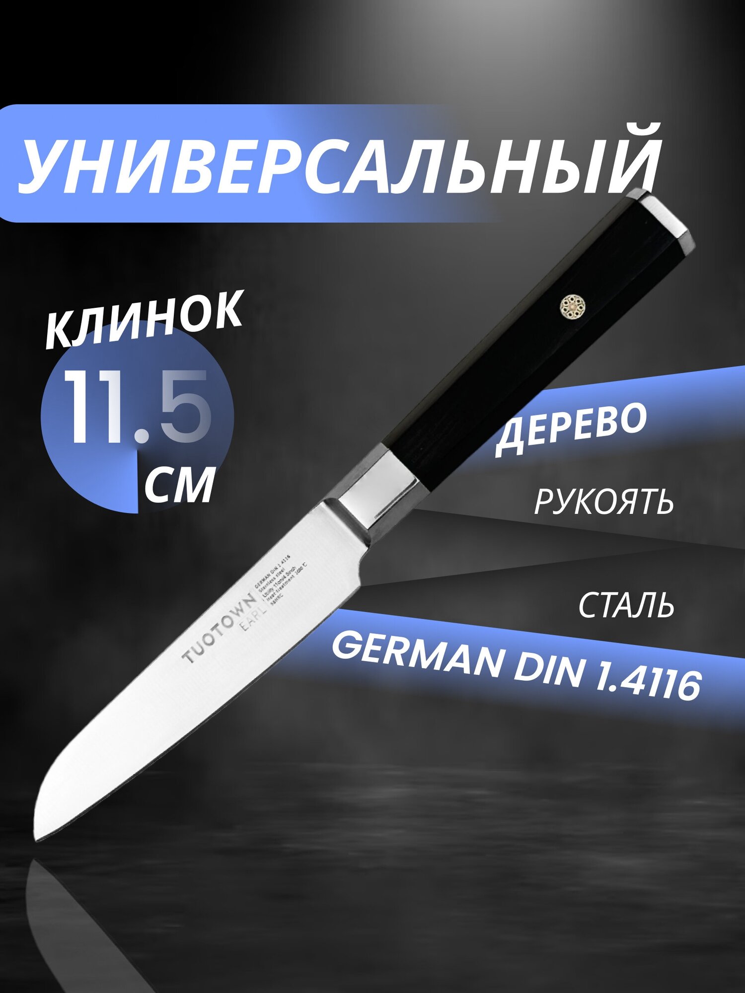 СохранитьКухонный нож Универсальный серии Earl, TUOTOWN, рукоять дерево интересное: