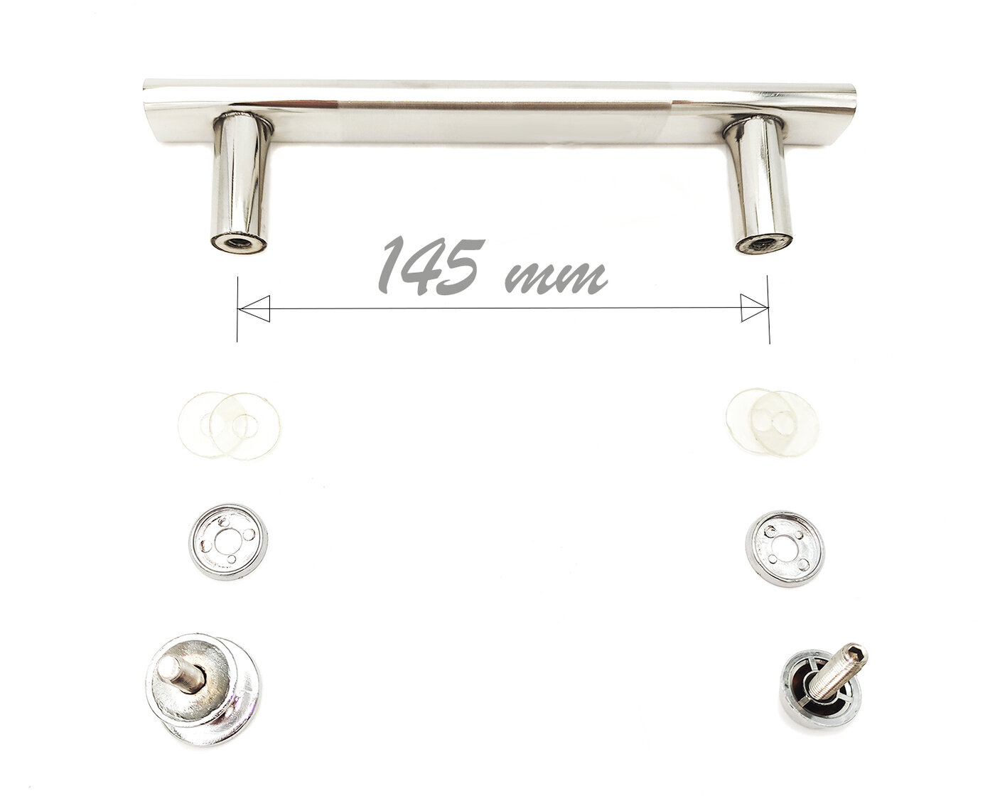 Ручка дверная металлическая для душевой кабины на 2 отверстия в стекле. Расстояние между отверстиями 145 мм. интересное: