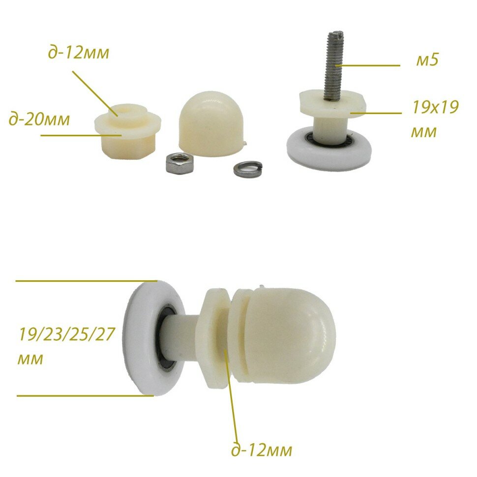 Ролик эксцентриковый 27 мм, под отв. 12мм, белый пластик, для душевой кабины, 1шт интересное: