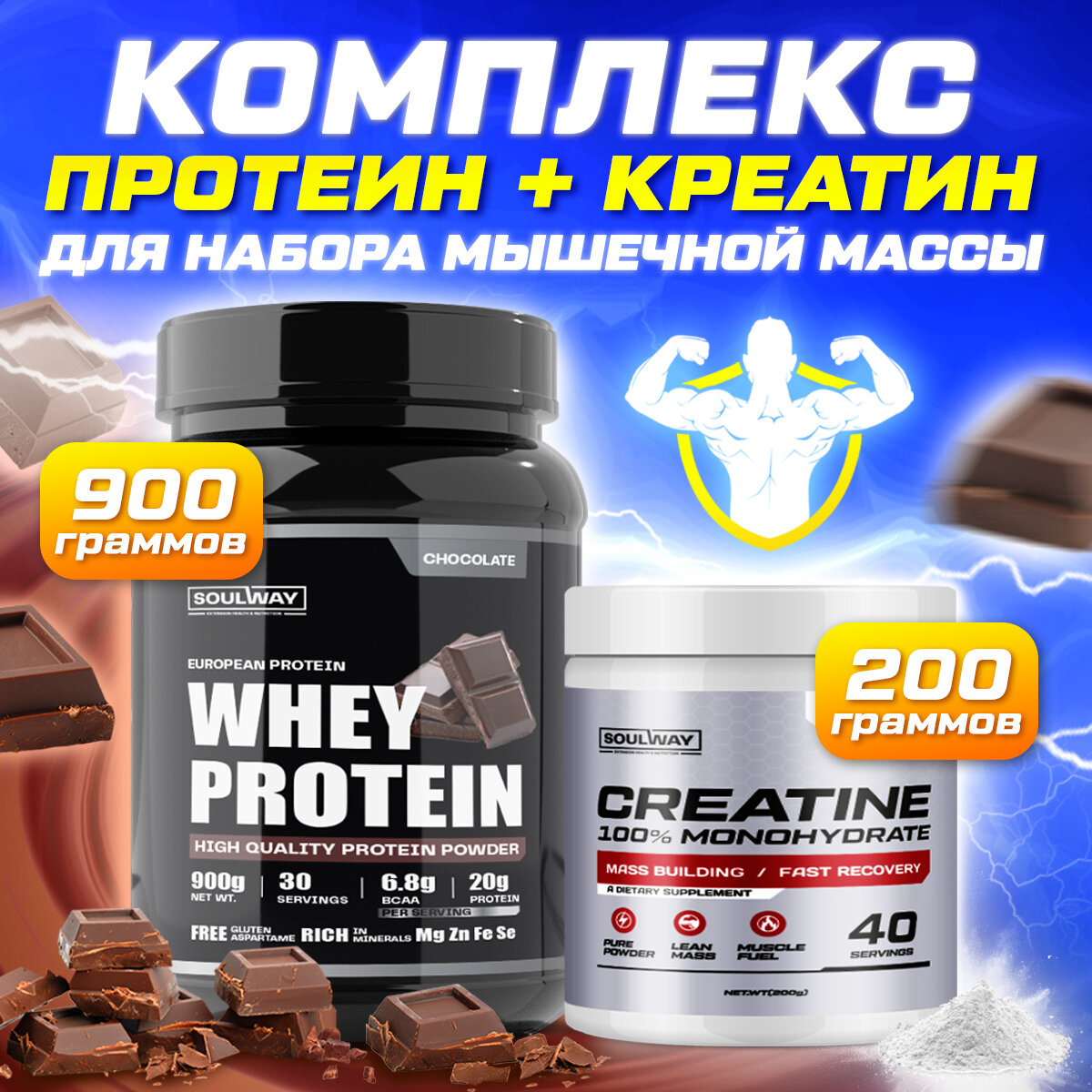 Комбо набор Протеин сывороточный шоколадный 900 гр 30 порций + Креатин моногидрат без вкуса 200 гр 40 порций