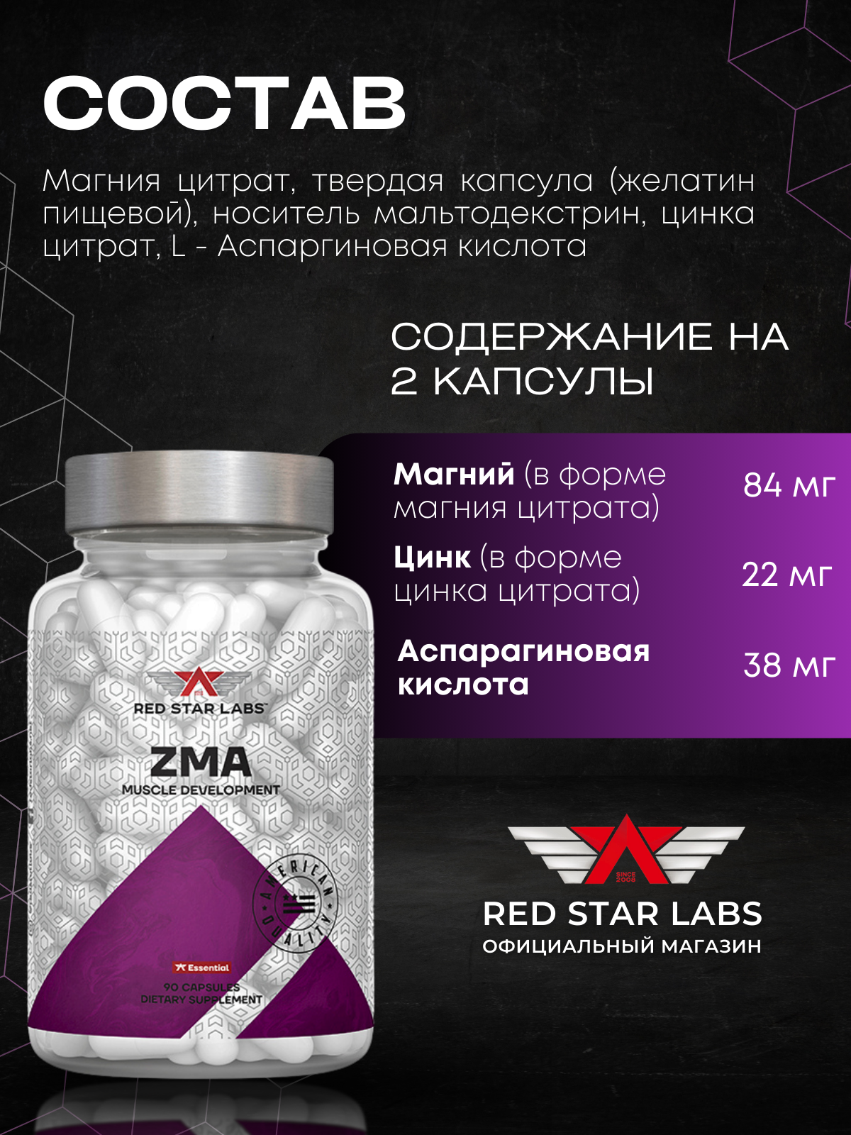 ZMA мультивитамины цинк магний витамин b6 тестобустер для мужчин 90 капс Red Star Labs интересное: