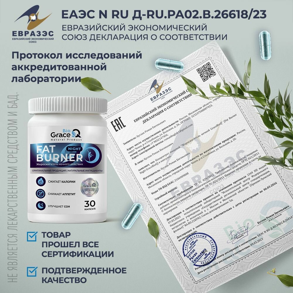 Жиросжигатель ночной для похудения GraceBioQ, спортивное питание, 30 капсул. интересное: