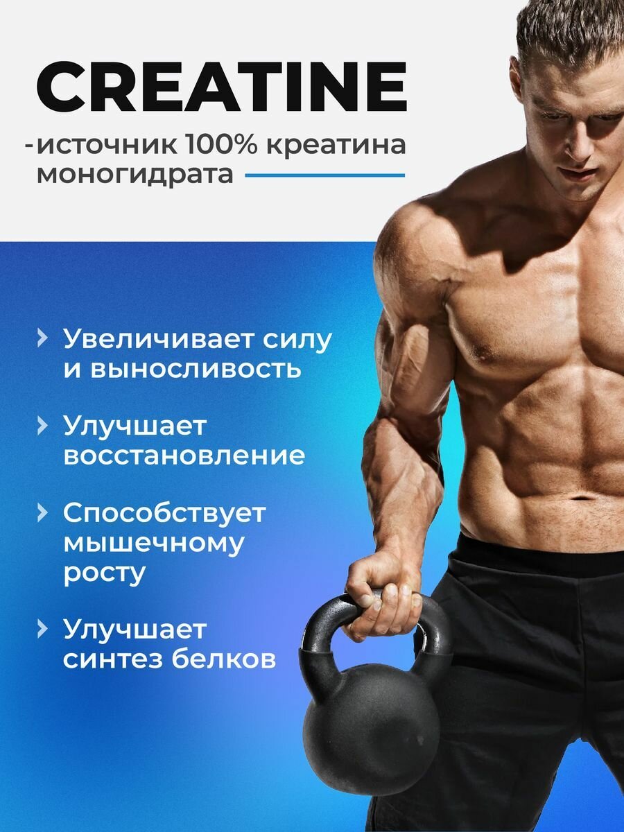 | Дополнительная информация | Способ применения: взрослым принимать 1-2 порции (6-12 капсул) продукта за 30-60 минут до тренировки или после нее, запивая достаточным количеством воды (не менее 200 мл). В дни, свободные от тренировок, принимать на голодный желудок утром или между приемами пищи. Для более эффективного усвоения креатина рекомендуется принимать его с напитками, содержащими углеводы или белок (сок, гейнер, протеиновый коктейль, вода с сахаром). |