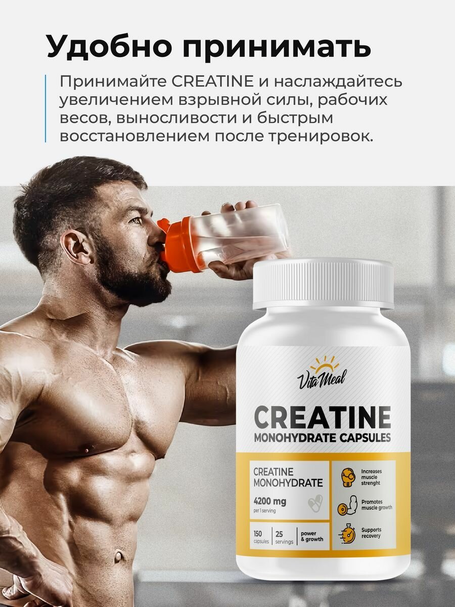 Креатин моногидрат 4200 мг в капсулах Creatine Monohydrate VitaMeal, 150 капсул