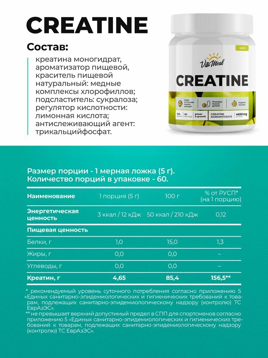 Купить Креатин моногидрат порошок Creatine Monohydrate VitaMeal 300 г, Яблоко