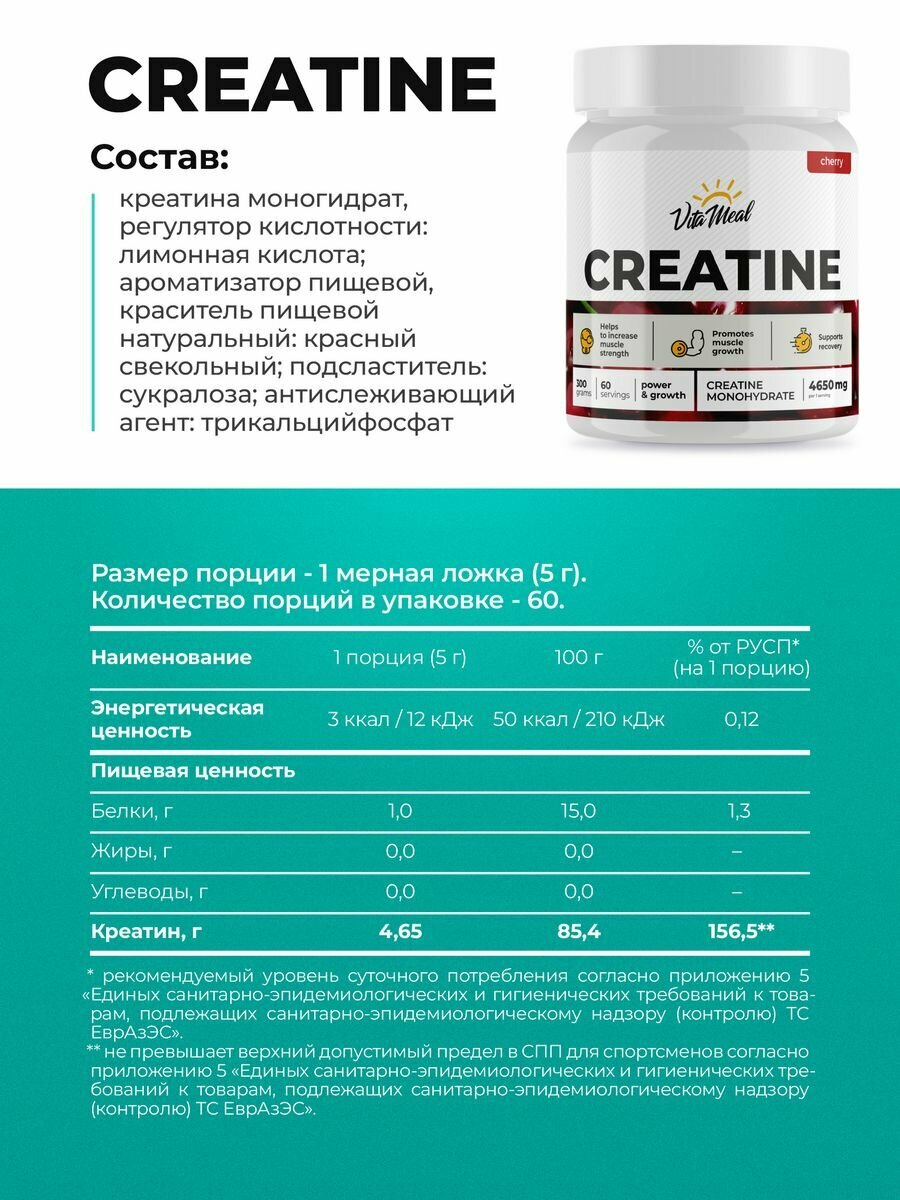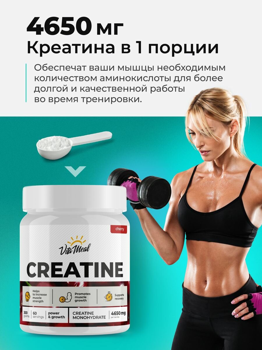 Купить Креатин моногидрат порошок Creatine Monohydrate VitaMeal 300 г, Вишня