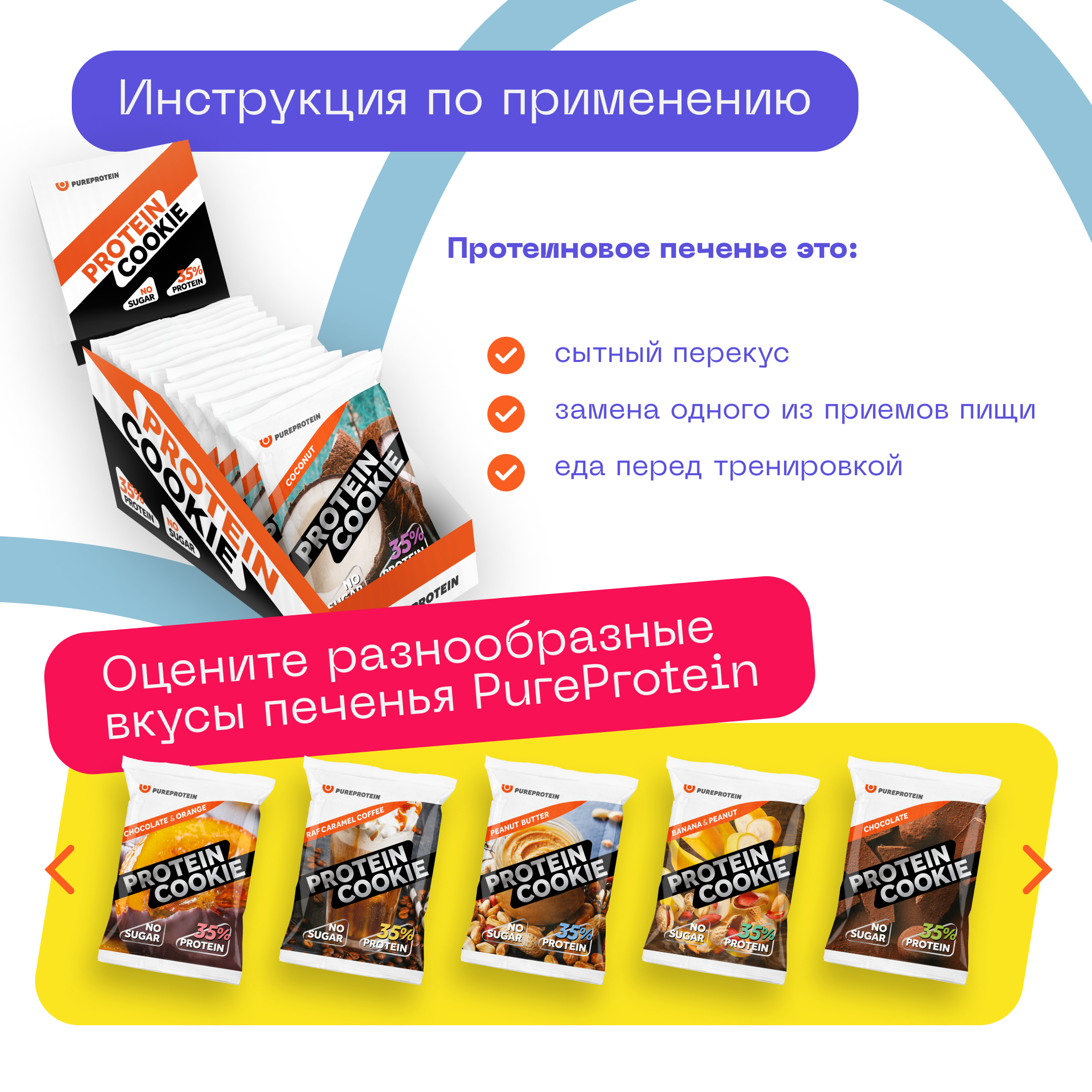 Протеиновое печенье Pureprotein Protein Cookie с высоким содержанием белка вкус ассорти Арахисовое масло Банан и Арахис Кокос Раф Карамель Шоколад Апельсин Шоколад 14шт*40г