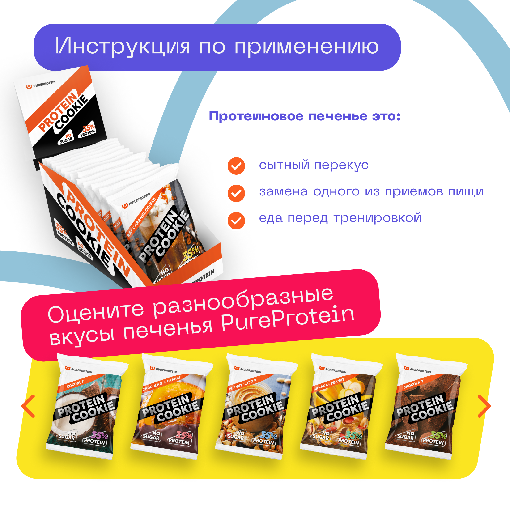 Протеиновое печенье Pureprotein Protein Cookie с высоким содержанием белка вкус ассорти Арахисовое масло Банан и Арахис Кокос Раф Карамель Шоколад Апельсин Шоколад 14шт*40г