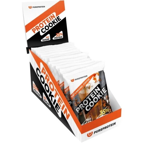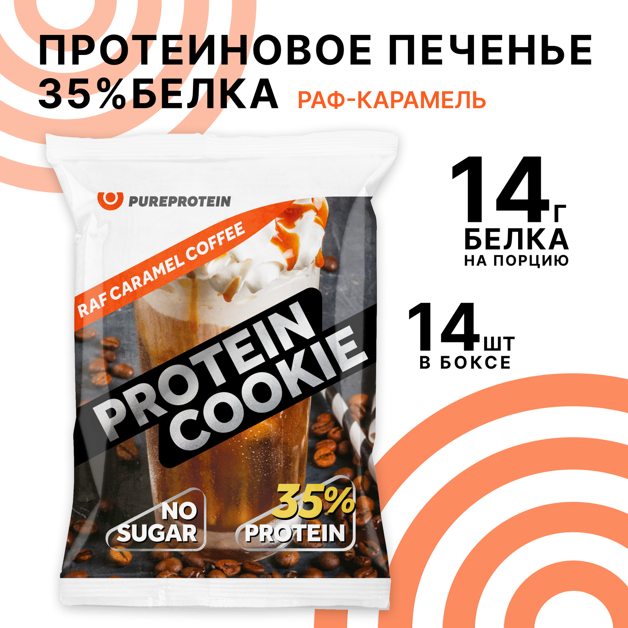 Купить Протеиновое печенье 35% белка Раф-Карамель PureProtein, ПП сладость десерт без сахара, спортивное печенье 14 шт*40г