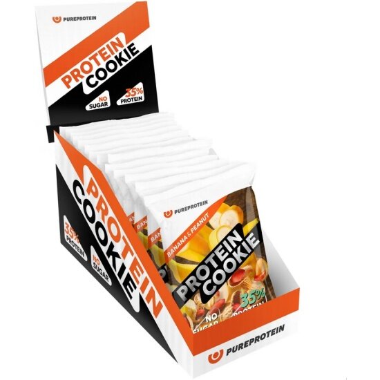 Купить Протеиновое печенье 35% белка Банан и арахис PureProtein, ПП сладость десерт без сахара, спортивное печенье 14 шт*40г
