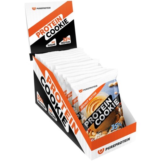 Купить Протеиновое печенье 35% белка Арахисовое масло PureProtein, десерт без сахара пп сладость, спортивное печенье, 14шт по 40г
