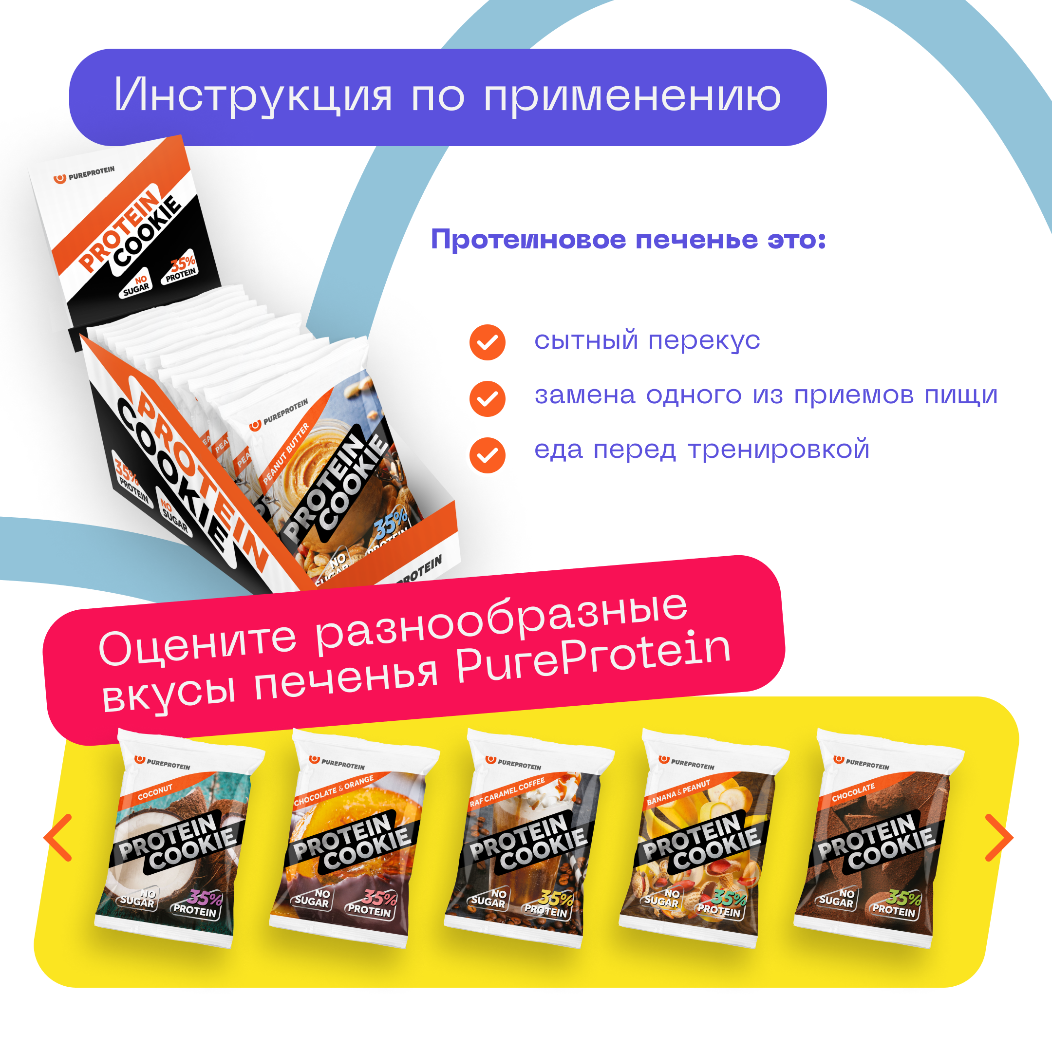 Протеиновое печенье Pureprotein Protein Cookie с высоким содержанием белка вкус ассорти Арахисовое масло Банан и Арахис Кокос Раф Карамель Шоколад Апельсин Шоколад 14шт*40г