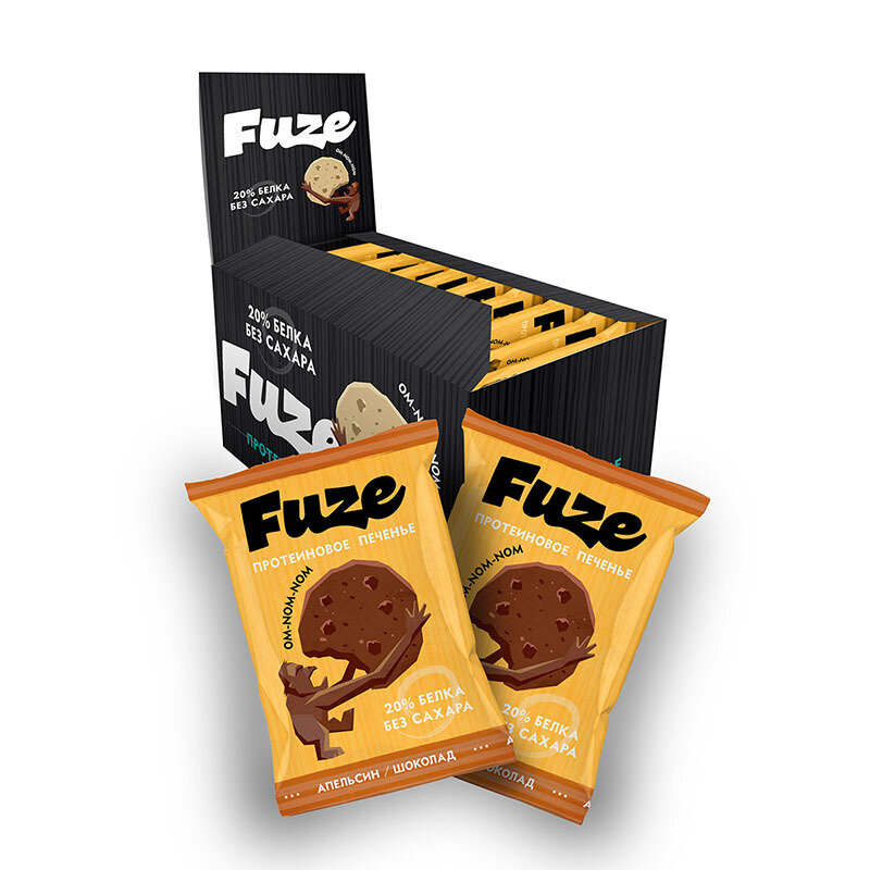 Купить Печенье Fuze с высоким содержанием белка . Вкус Апельсин-шоколад (бокс = 9 уп.)