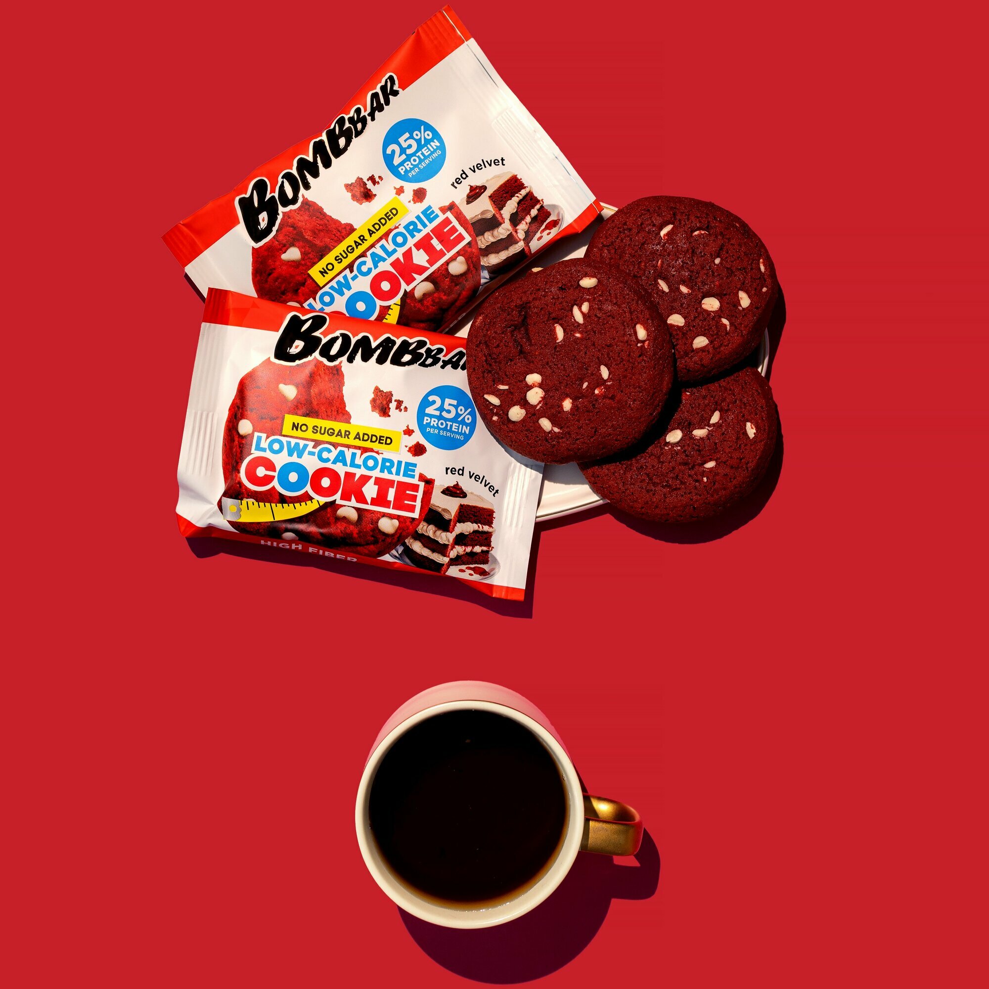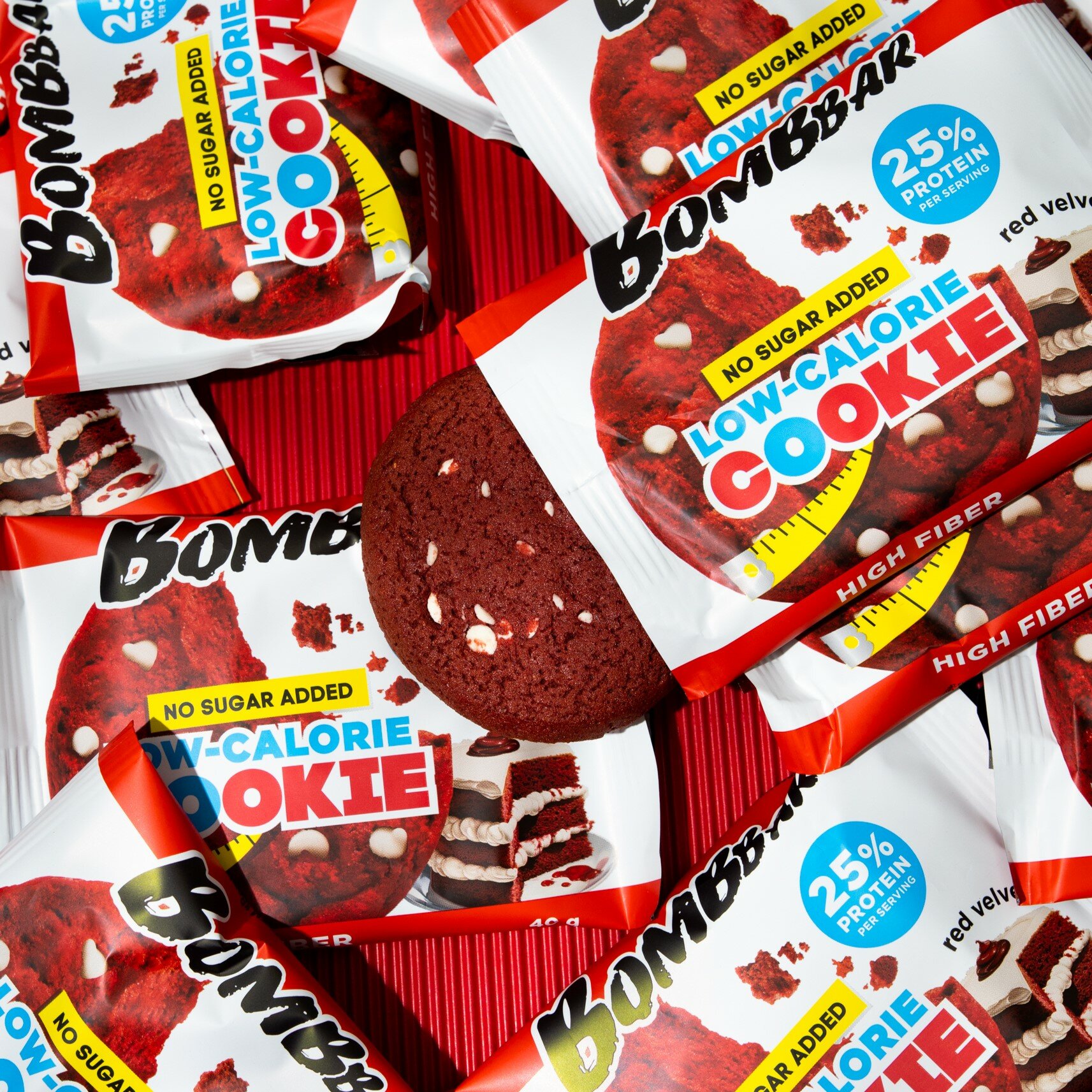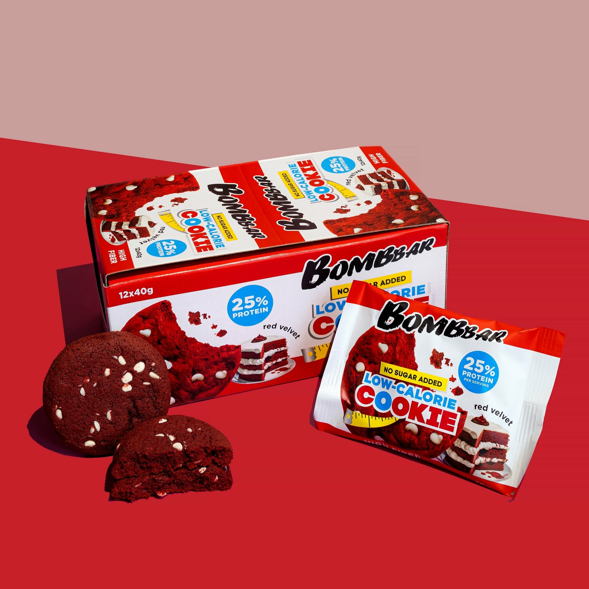 Купить Bombbar Низкокалорийное протеиновое печенье без сахара "Красный бархат", 12шт х 40г