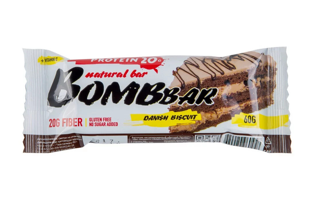 Протеиновый батончик Bombbar со вкусом Датский бисквит 60г