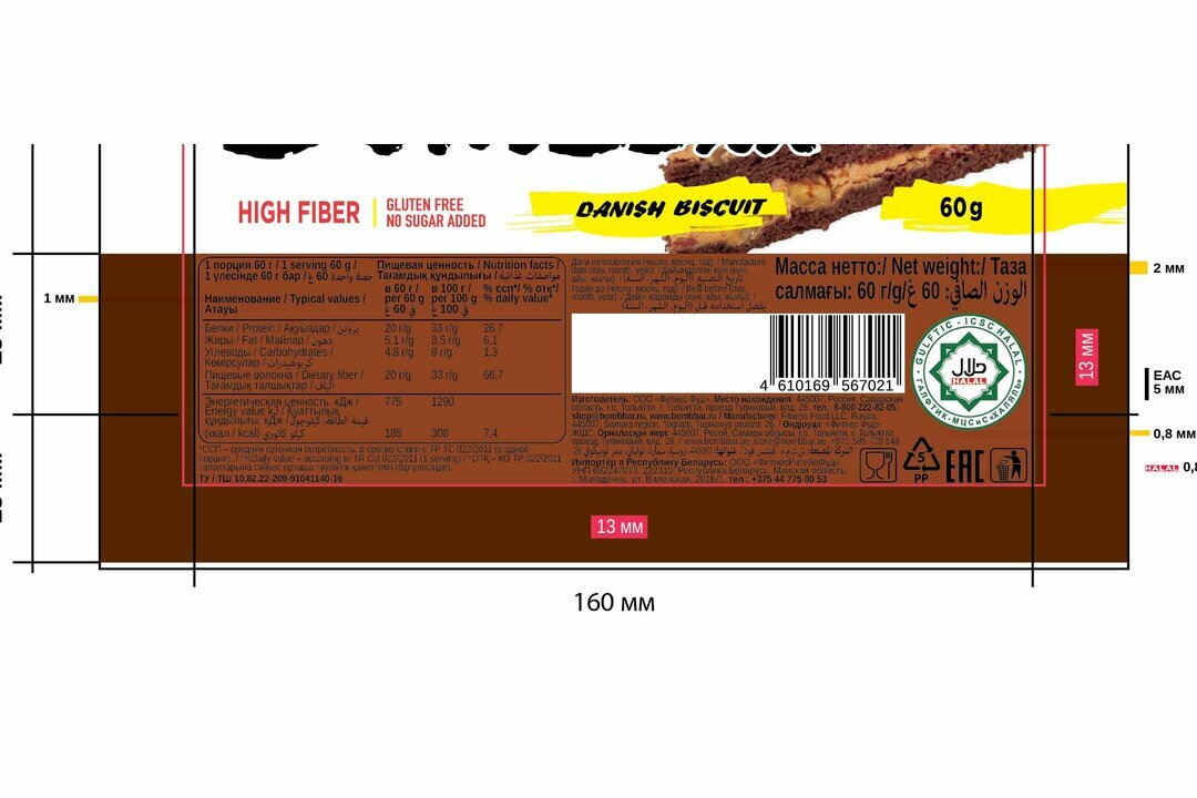BomBBar протеиновый батончик - 60 грамм, датский бисквит