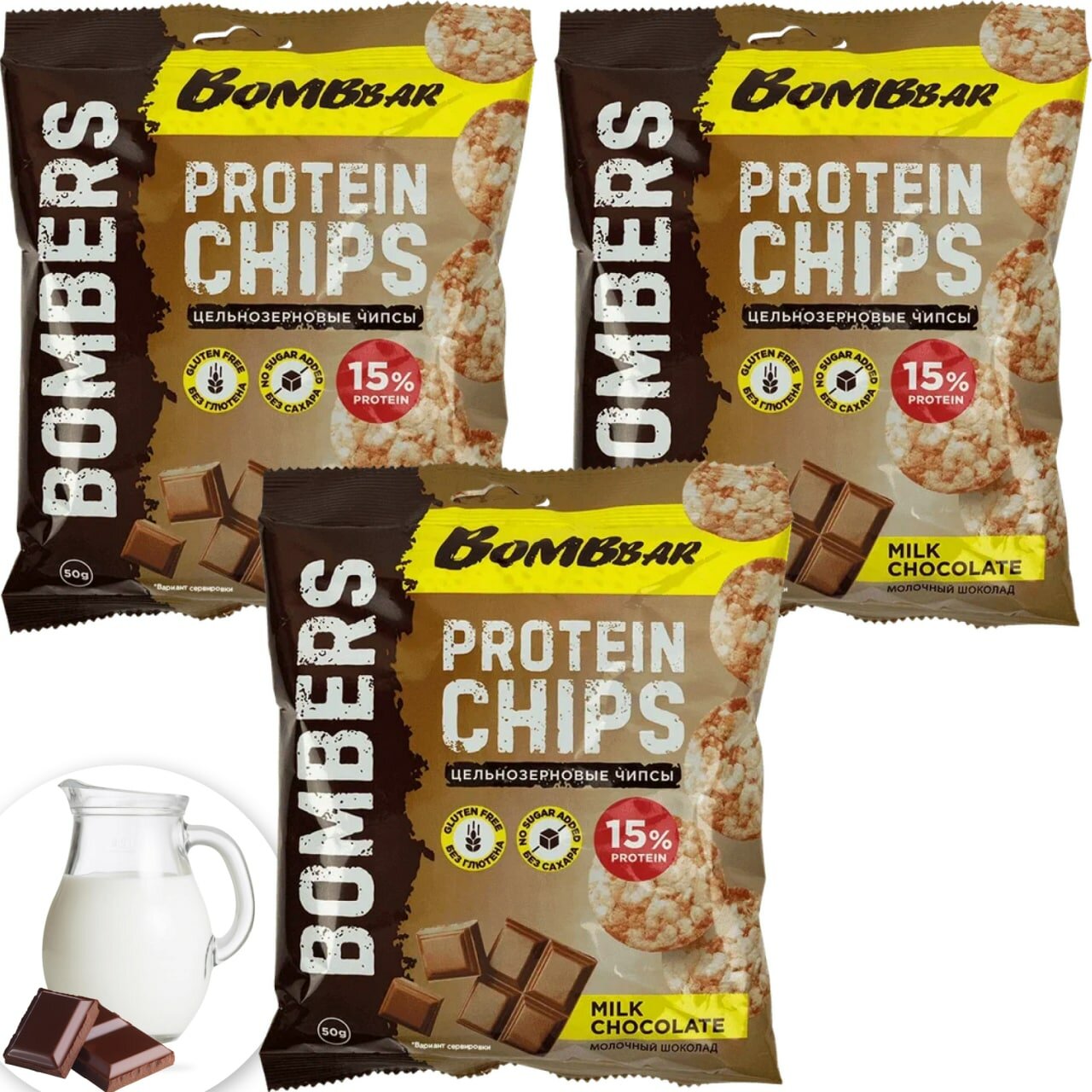 Купить Чипсы Bombbar Protein Chips 3 x 50 г, Молочный шоколад