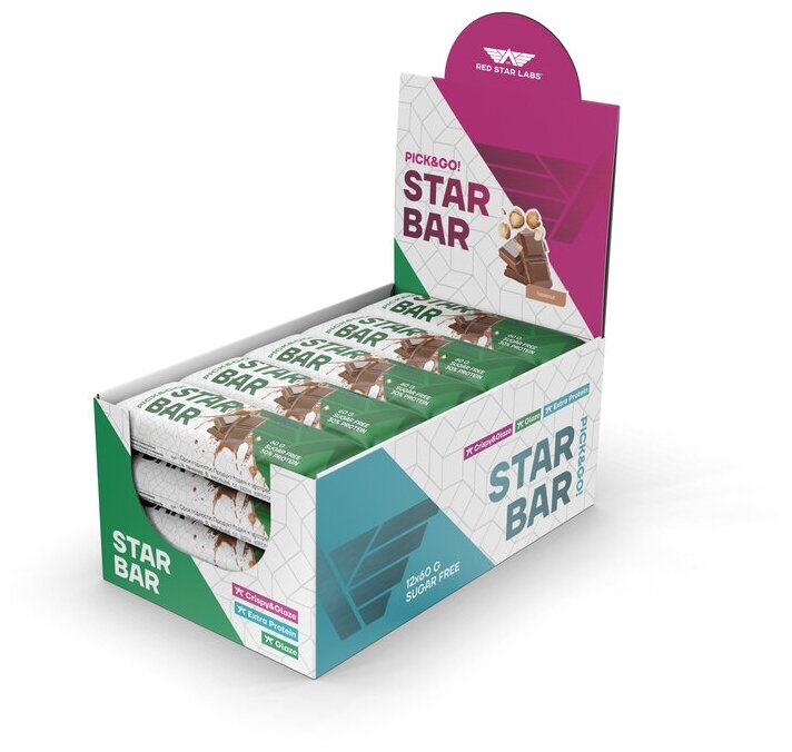 СохранитьПротеиновые батончики без сахара в темном шоколаде STARBAR Glaze, вкус: фундук 12 шт по 60 г интересное: