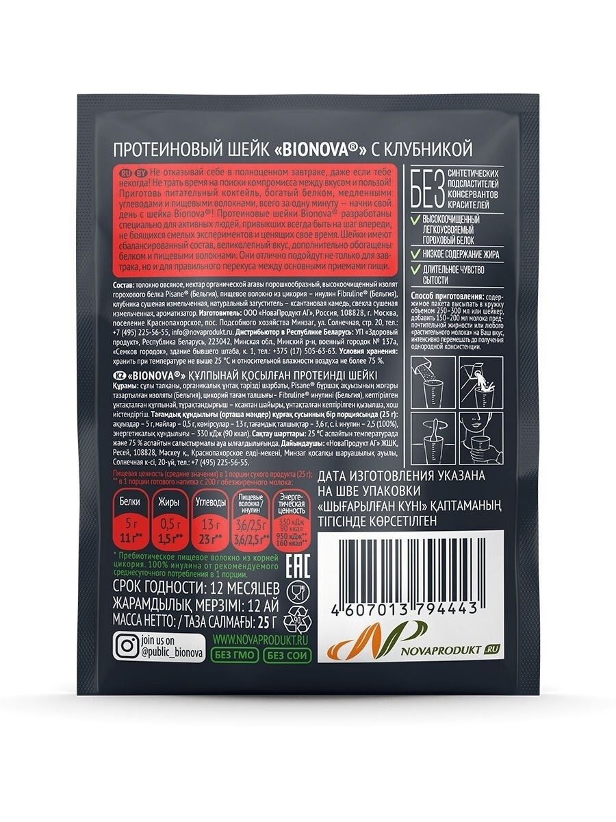 Протеиновый шейк "BIONOVA" с клубникой, 25гр. по 14 шт интересное: