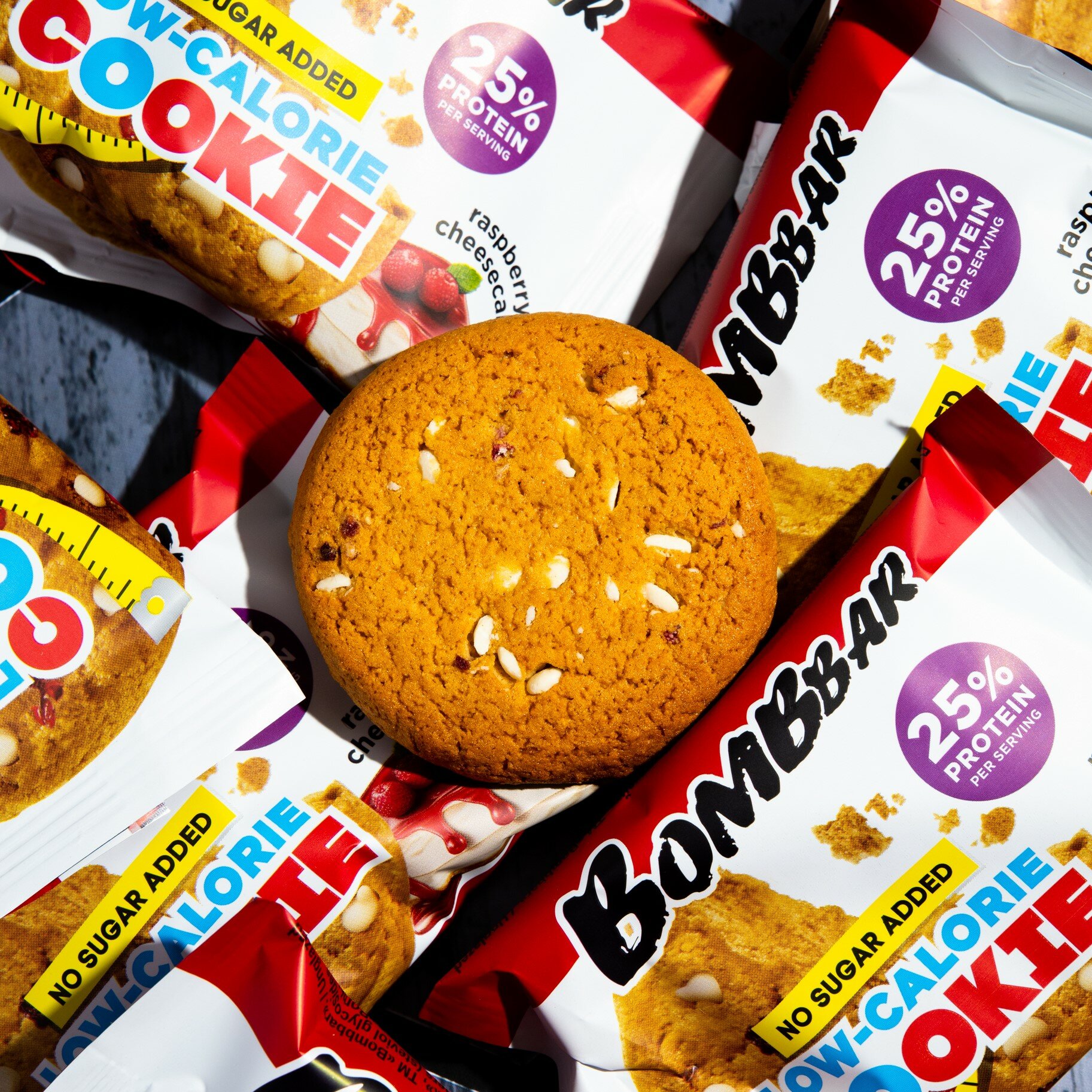 Низкокалорийное протеиновое печенье без сахара BOMBBAR Protein Cookie, Малиновый чизкейк, 12 шт по 40 г