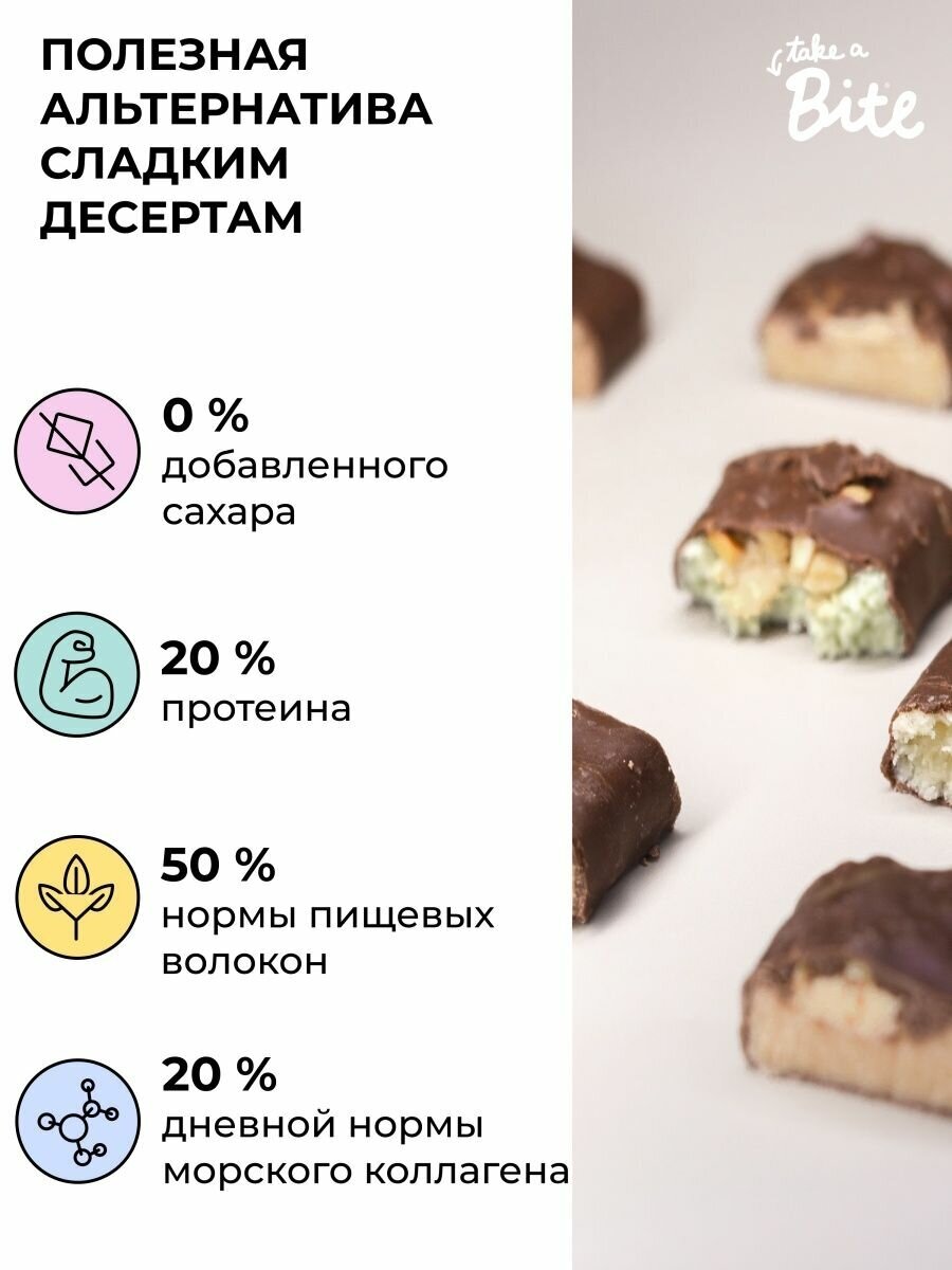 Протеиновые батончики без сахара Take a Bite, ассорти из 6 вкусов, 12 шт по 50 гр