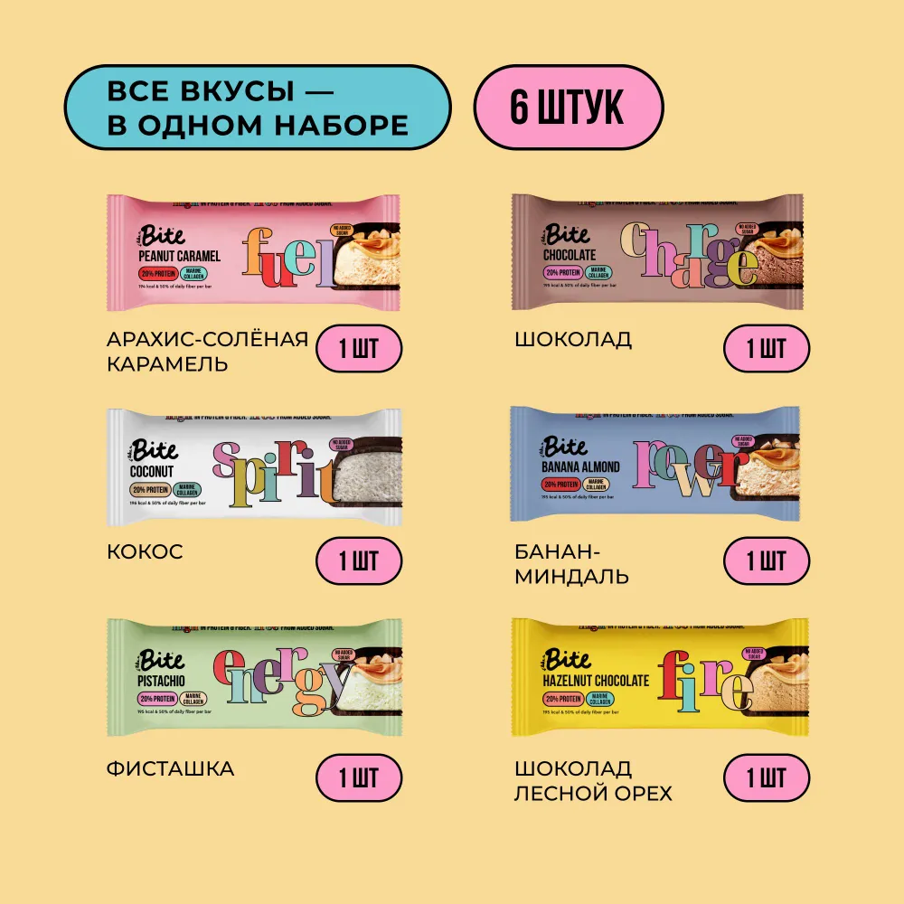 Купить Протеиновые батончики без сахара Take a Bite, ассорти из 6 вкусов, 6 шт по 50 гр