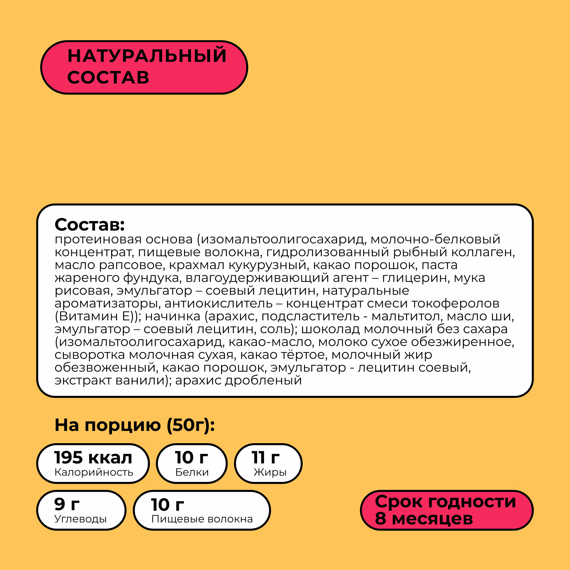 | Вкус | арахис-соленая карамель / ассорти / ассорти 3 вкуса / ассорти всех вкусов / банан-миндаль / капучино / кокос / малина / фисташка / шоколад / шоколад-лесной орех |