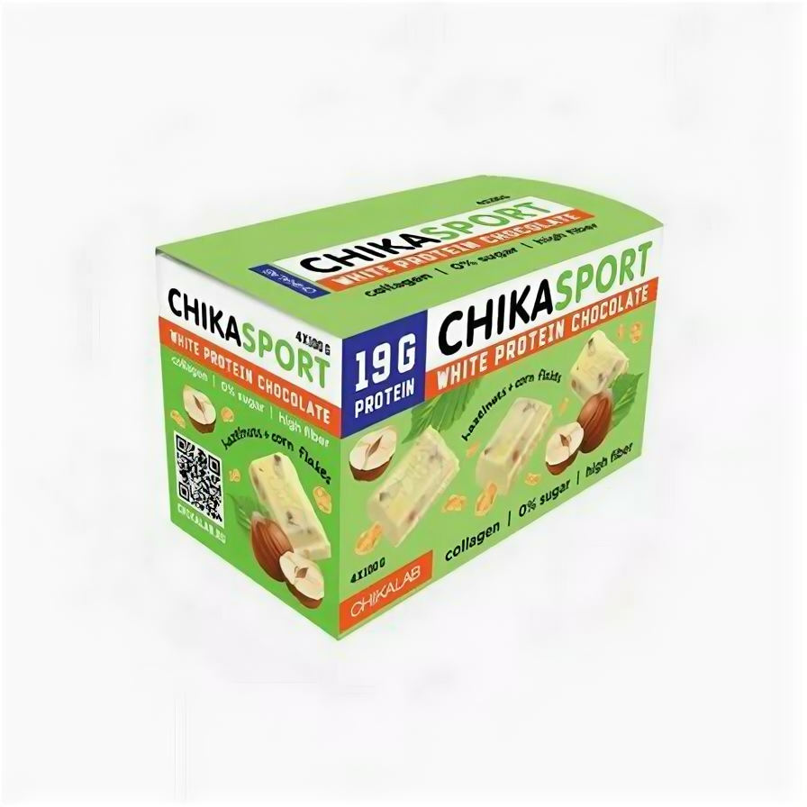Купить CHIKALAB Шоколад белый с фундуком и кукурузными чипсами (100 г)
