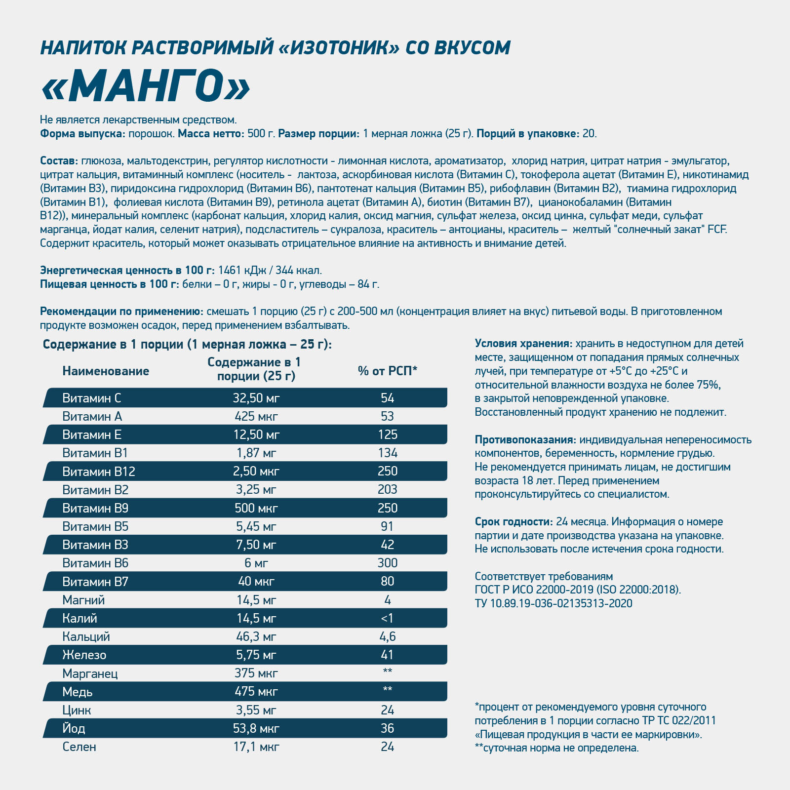 | Диетические особенности | без аспартама / без глютена / без лактозы |