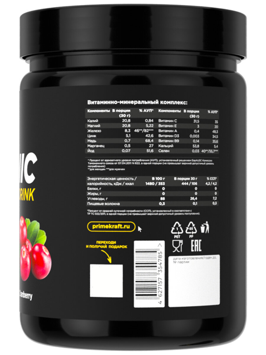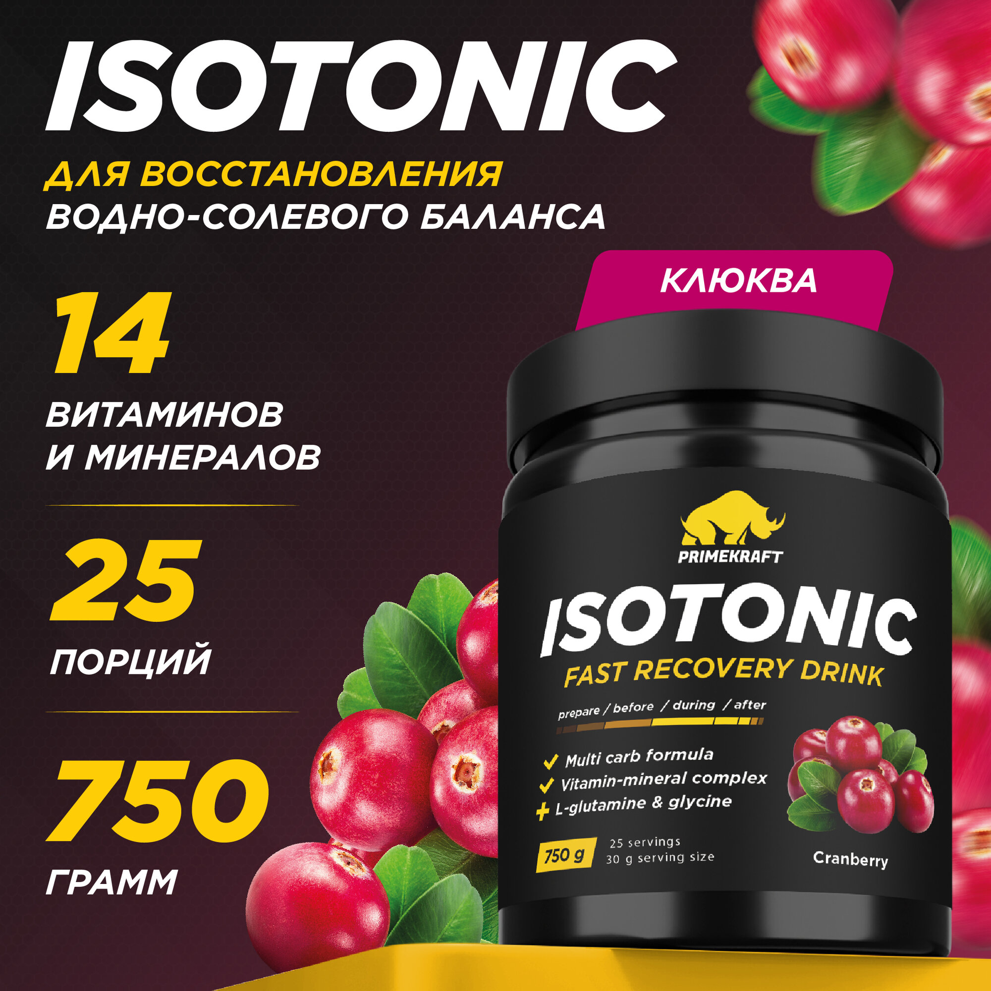 Изотоник PRIME KRAFT Isotonic, Клюква, 750г / 25 порций