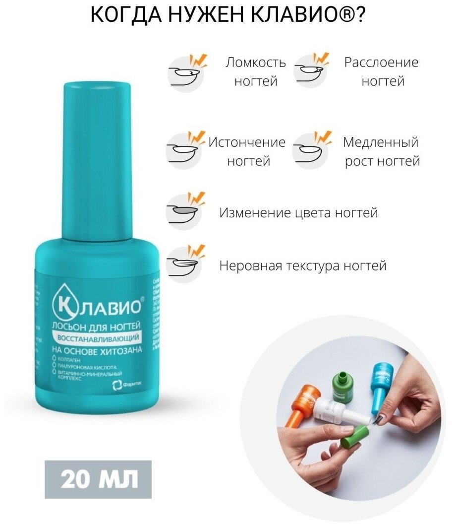 Клавио лосьон для ногтей восстанавливающий 20 мл Фармтек средство для тонких ослабленных ногтей
