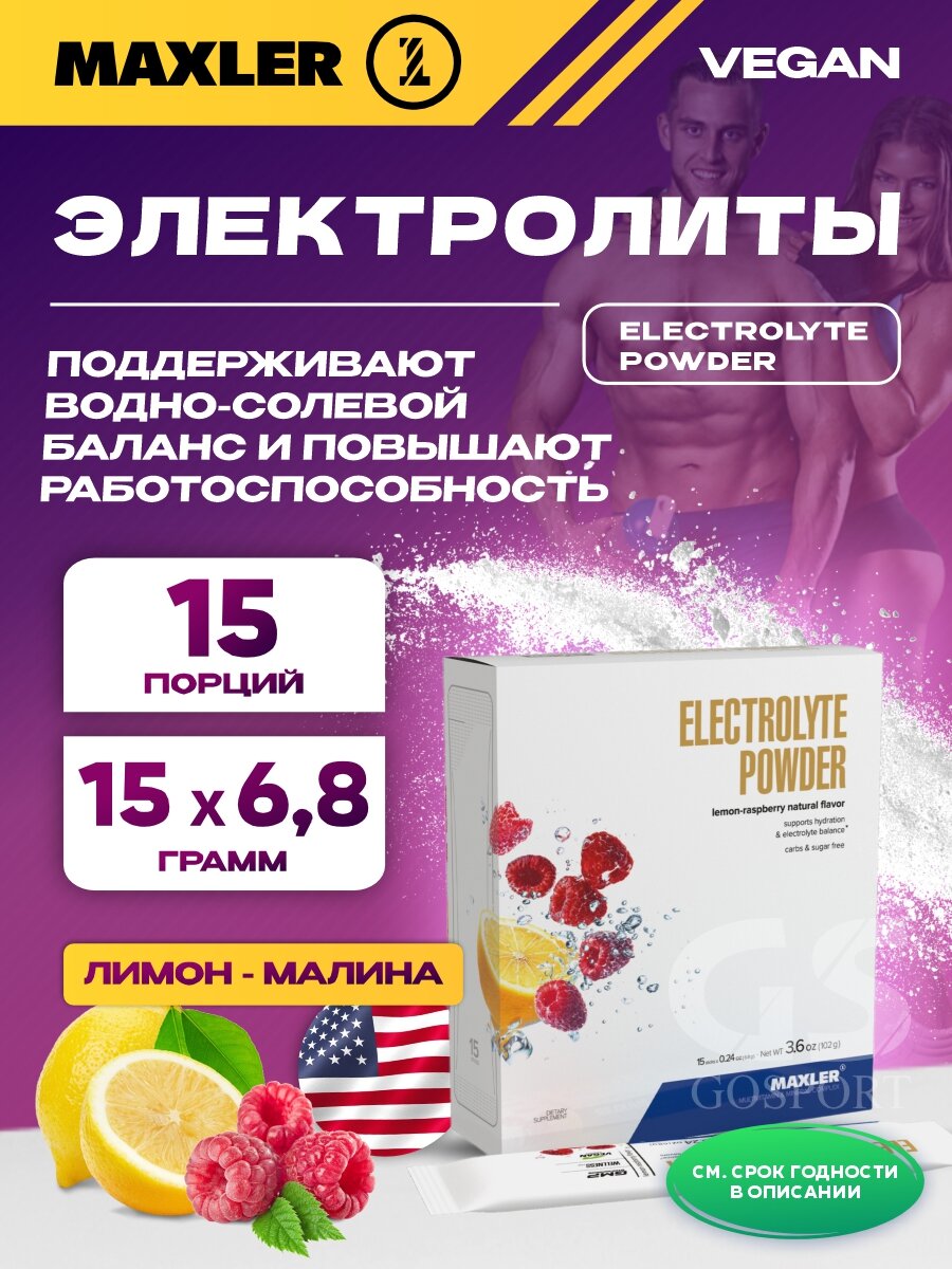 Электролиты в шипучках MAXLER (USA) Electrolyte Powder 15 х 6,8 г, Лимон - Малина интересное: