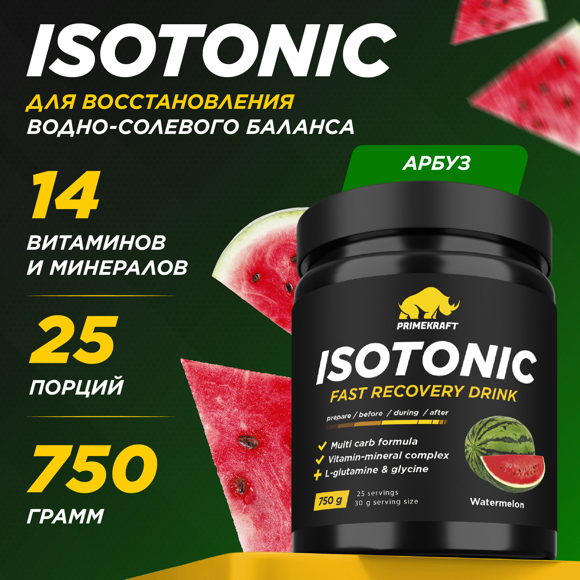 Купить Изотоник PRIMEKRAFT со вкусом Арбуза Isotonic (Watermelon) банка, 750 гр / 25 порций