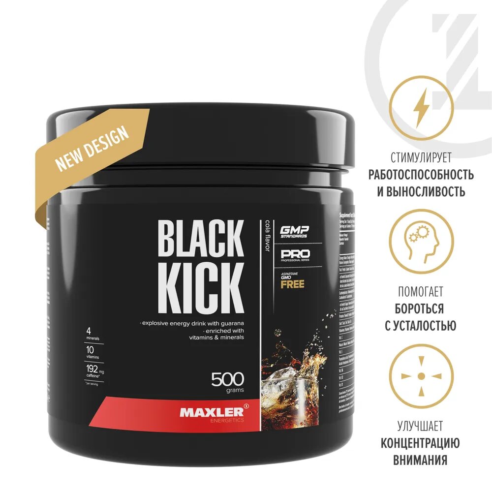 Купить Энергетик Maxler Black Kick 500 гр. ( Кофеин, Гуарана и витаминный комплекс ) банка - Кола