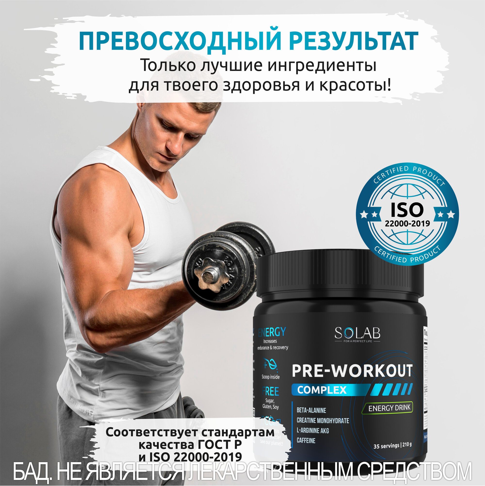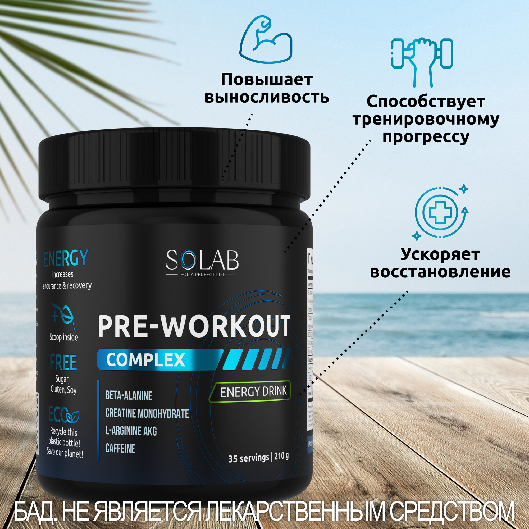 SOLAB Предтренировочный комплекс энергетик Pre-workout, вкус Энергетик, 35 порций интересное: