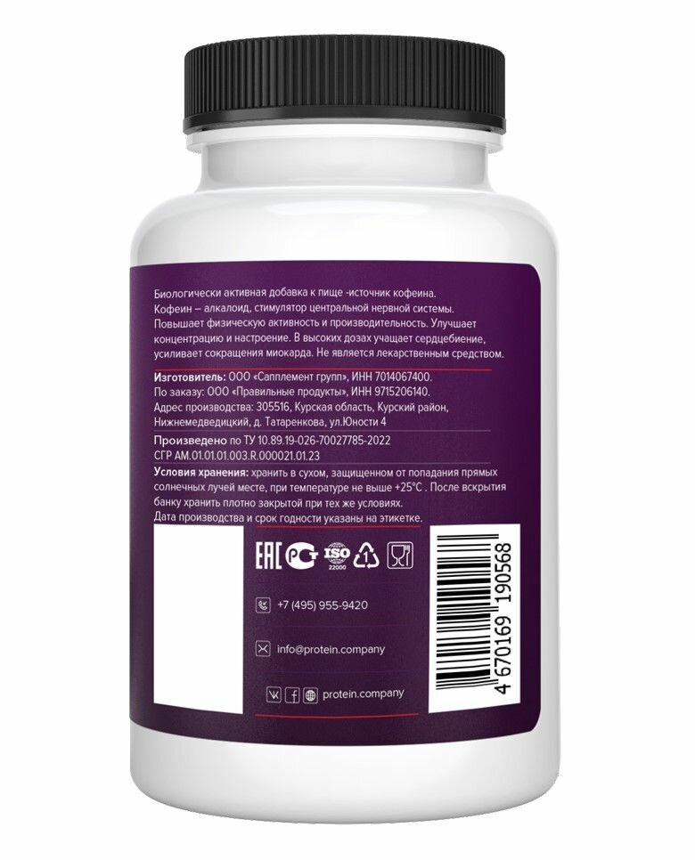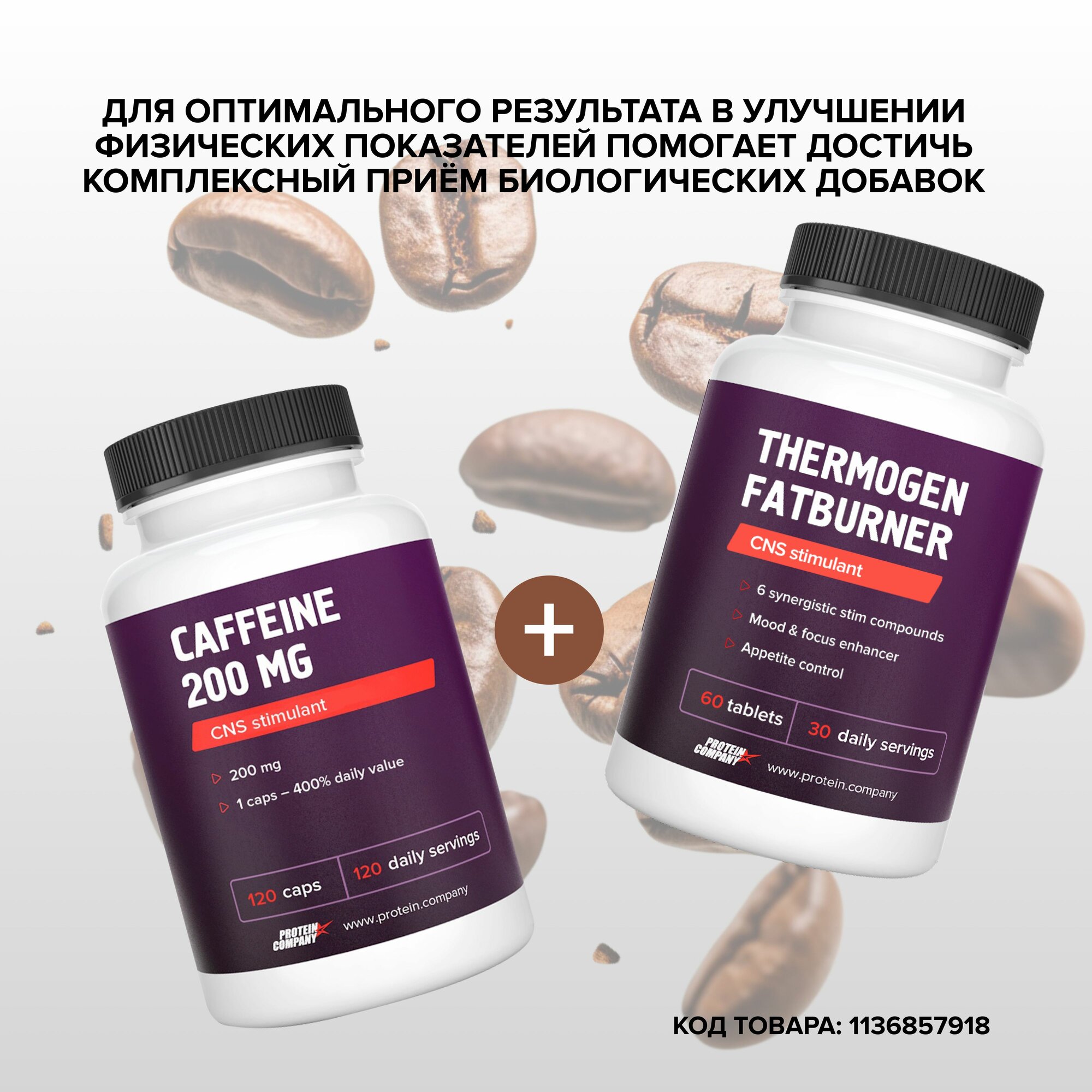 Кофеин 200 мг PROTEIN.COMPANY, Caffeine, энергетик, для тонуса, 120 капсул
