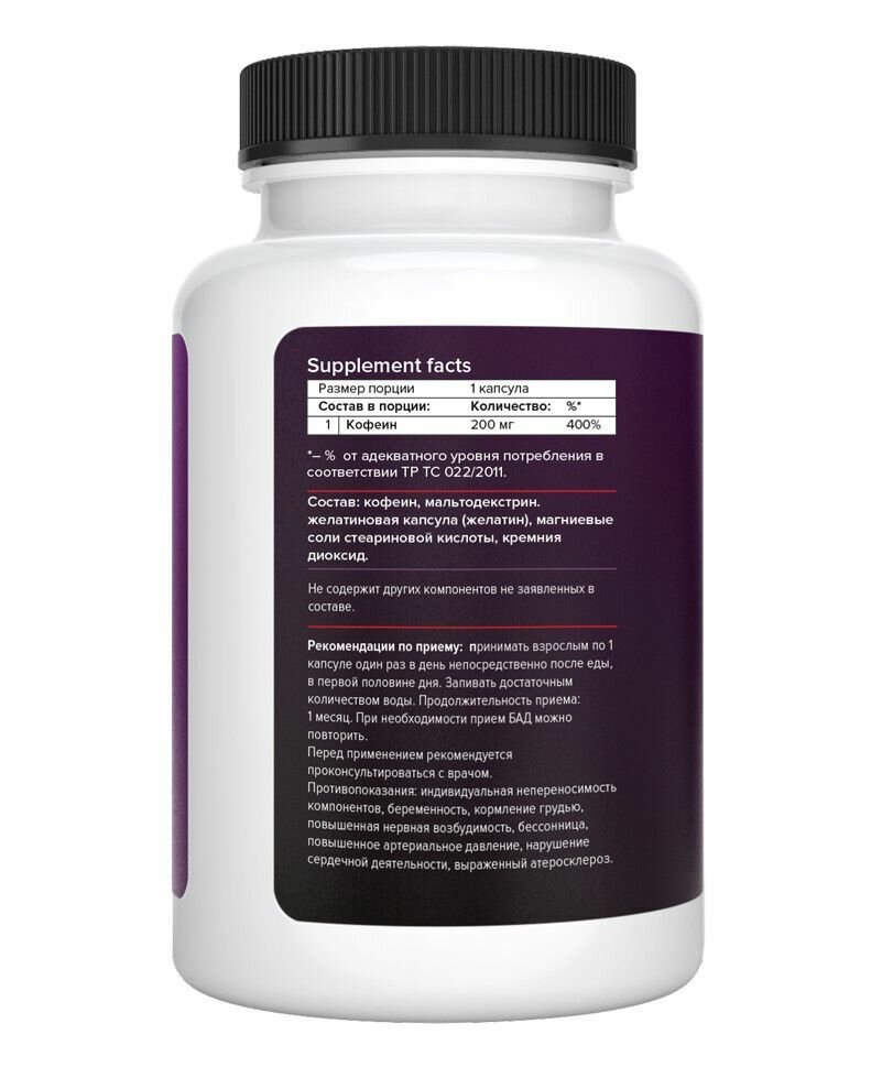 Кофеин, 200 мг. Энергетик, для тонуса, спортивное питание. Caffeine. 120 капсул интересное: