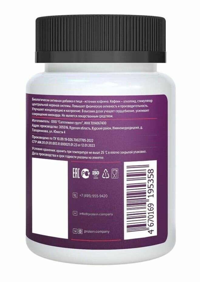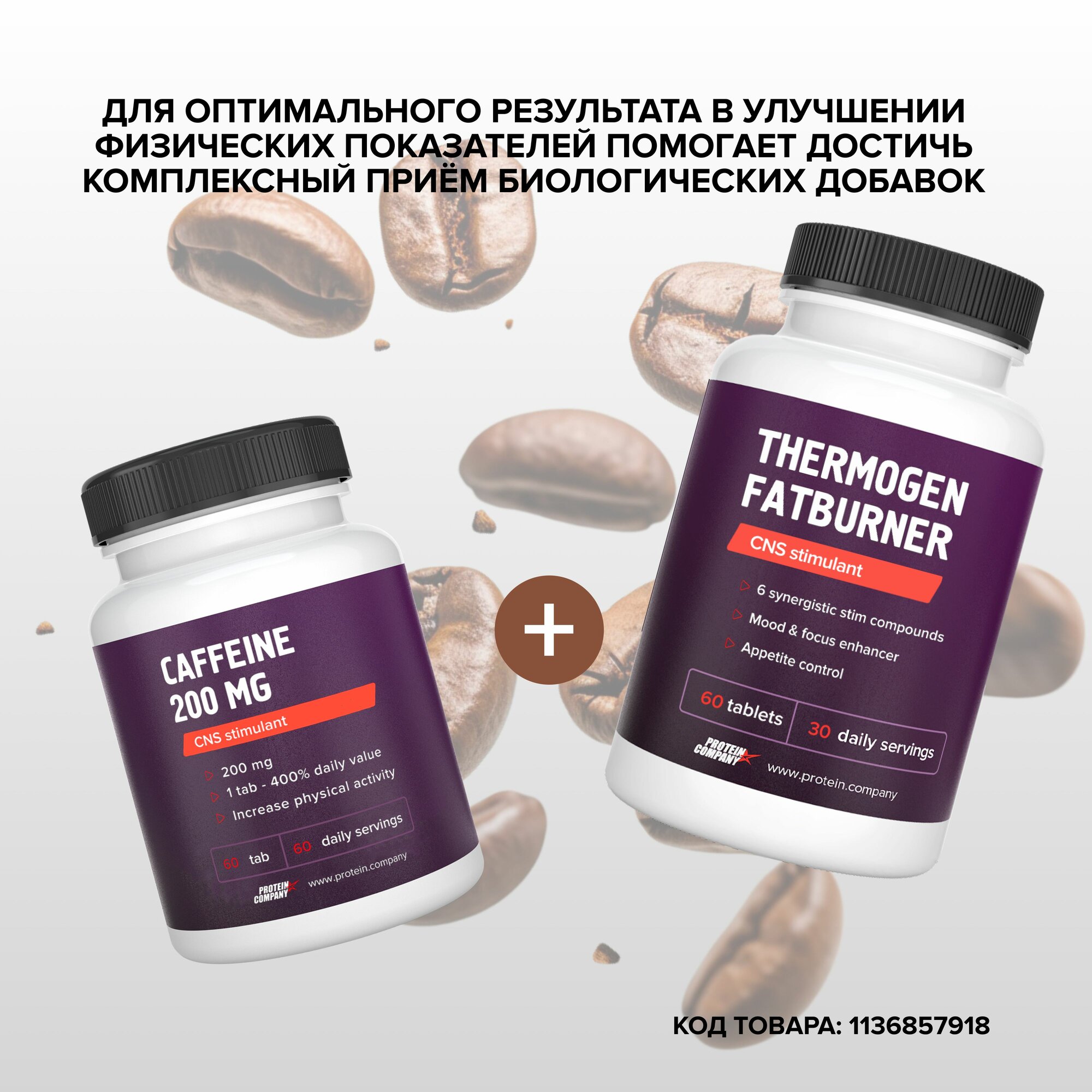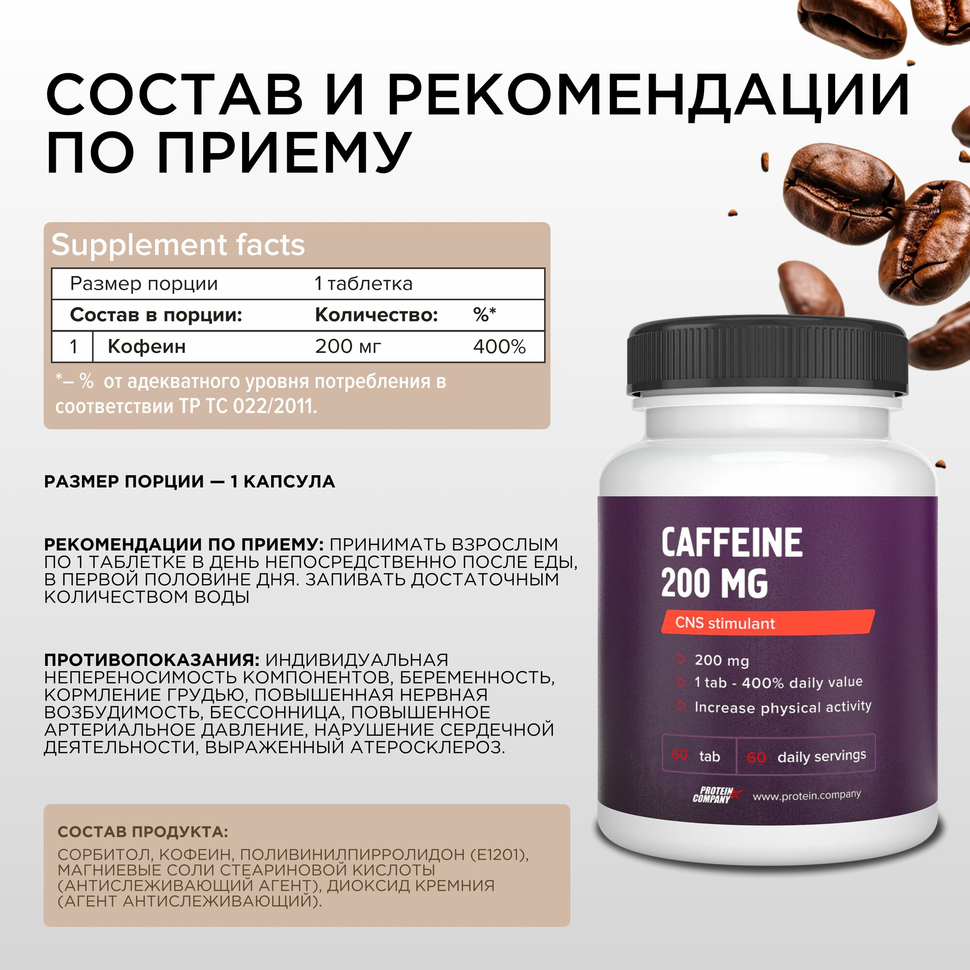 Кофеин 200 мг PROTEIN.COMPANY, Caffeine, энергетик, для тонуса, 120 капсул