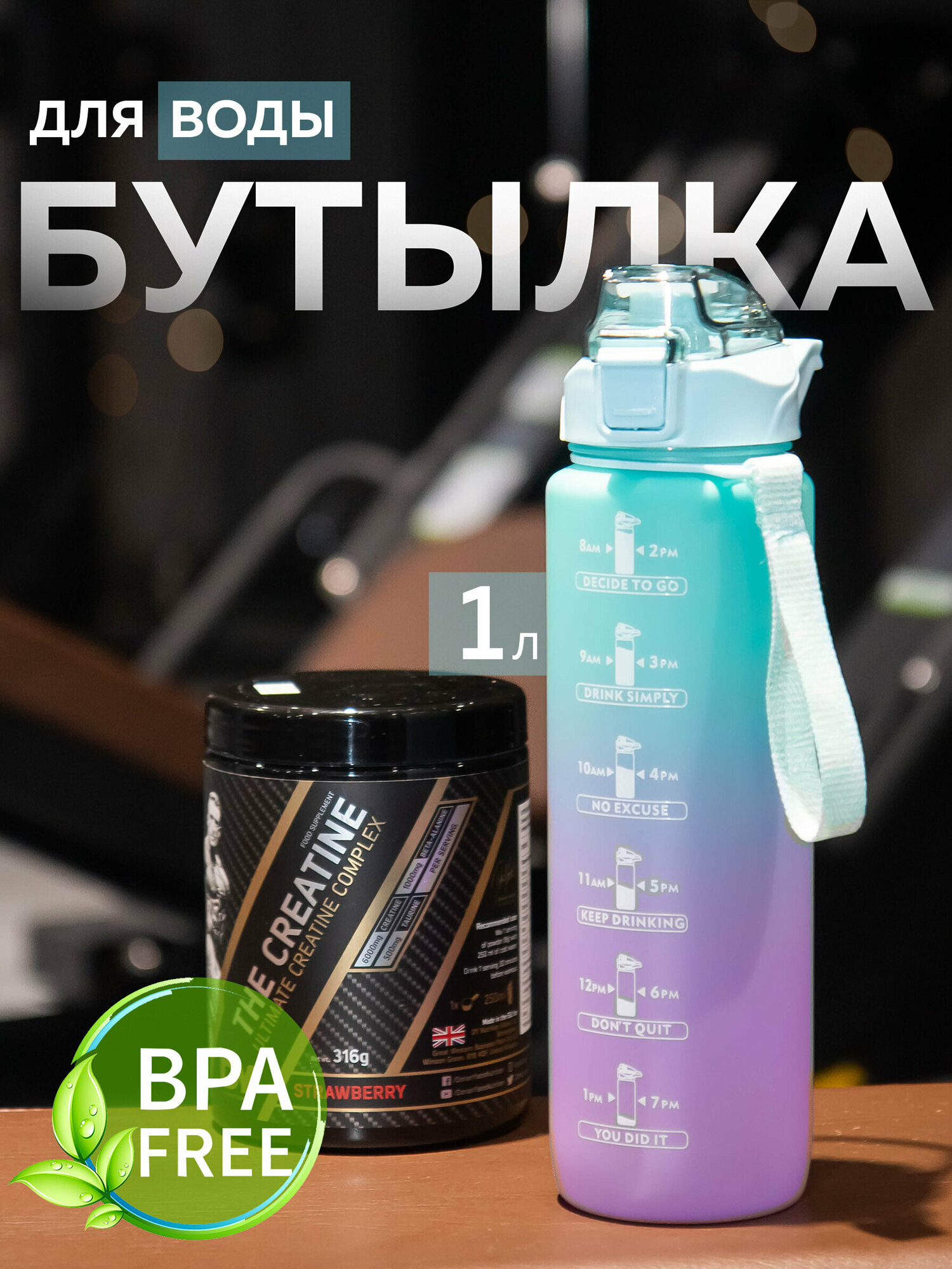 Бутылка спортивная с трубкой 1000 мл, бутылка для питья воды 1 литр, бирюзовый интересное: