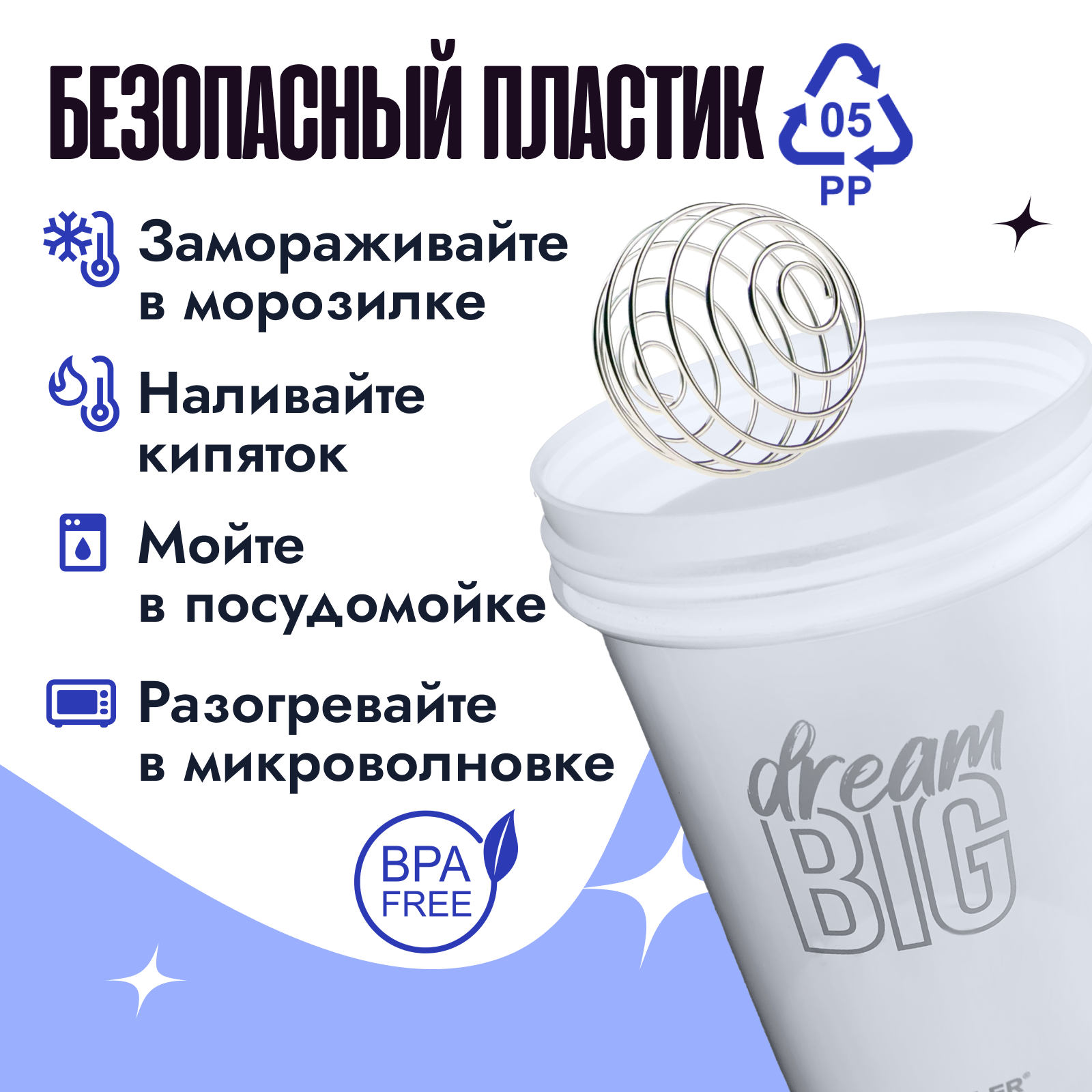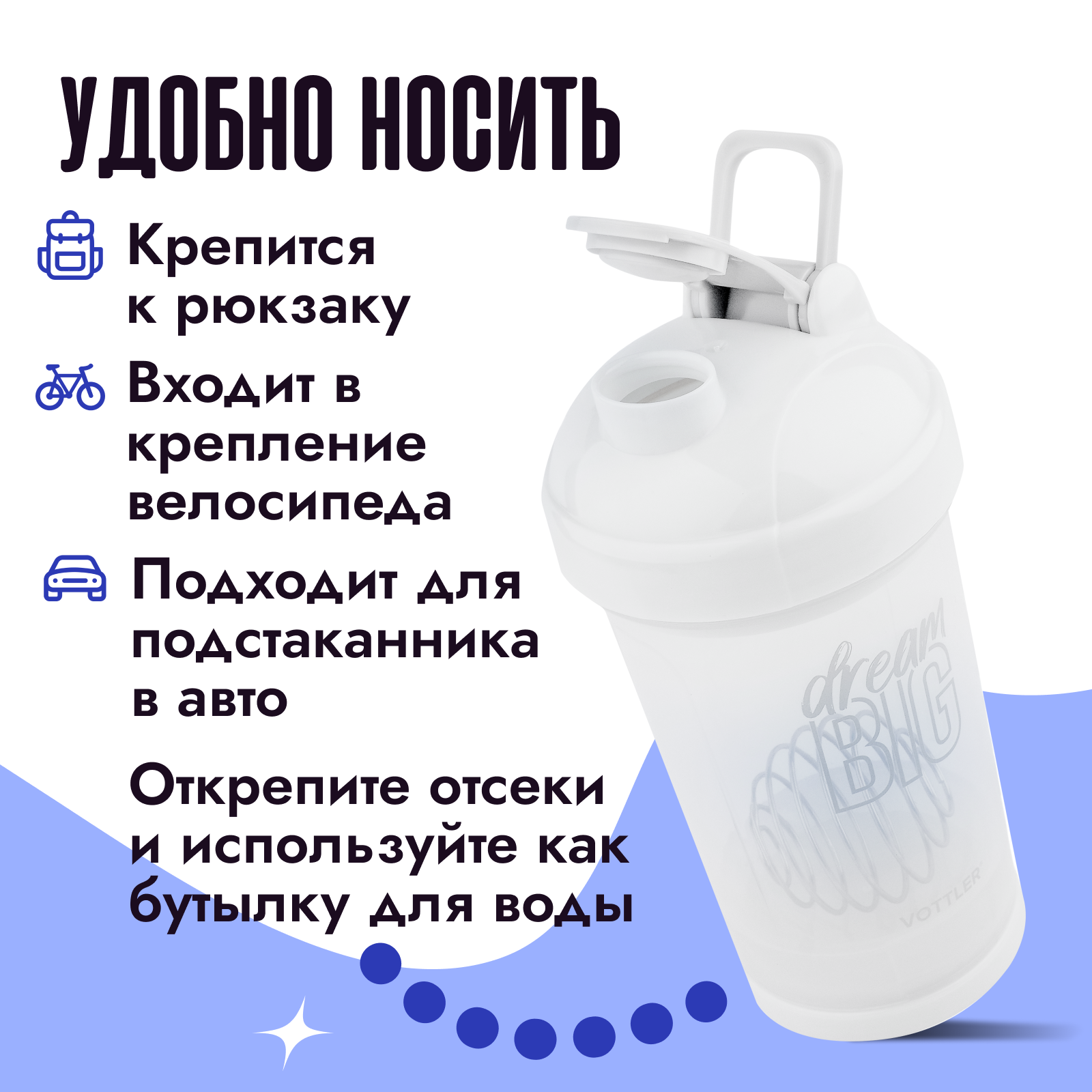 Шейкер спортивный с венчиком и контейнером для протеина спортивного питания VOTTLER интересное: