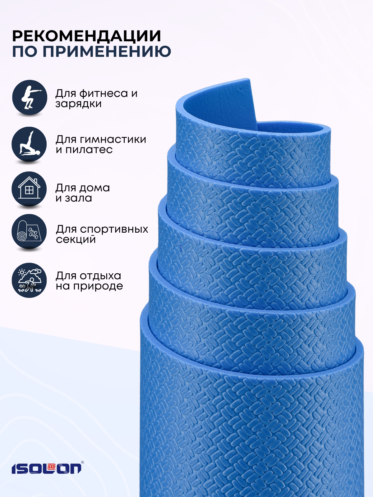 СохранитьКоврик спортивный для зарядки и гимнастики Isolon Sport 5, 180х60 см синий интересное: